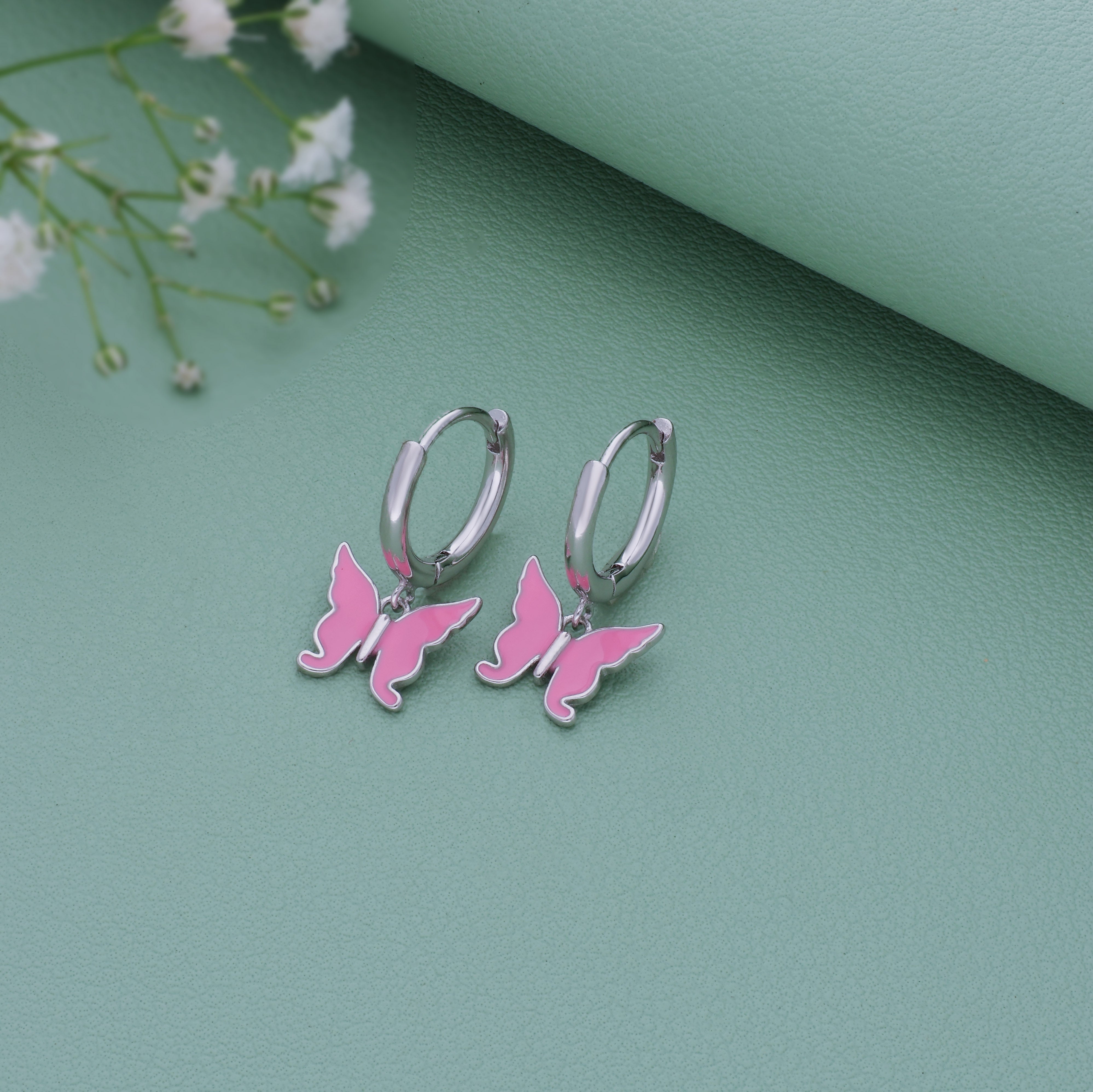 Let your little one’s dreams take flight with the Butterfly Charm Hoop. Its dainty wings shimmer with joy, symbolizing freedom and happiness in every twirl. Finished with a radiant rhodium polish for a lasting shine, this lightweight pair is gentle on tender skin — a perfect everyday sparkle for kids aged 5 and above.
