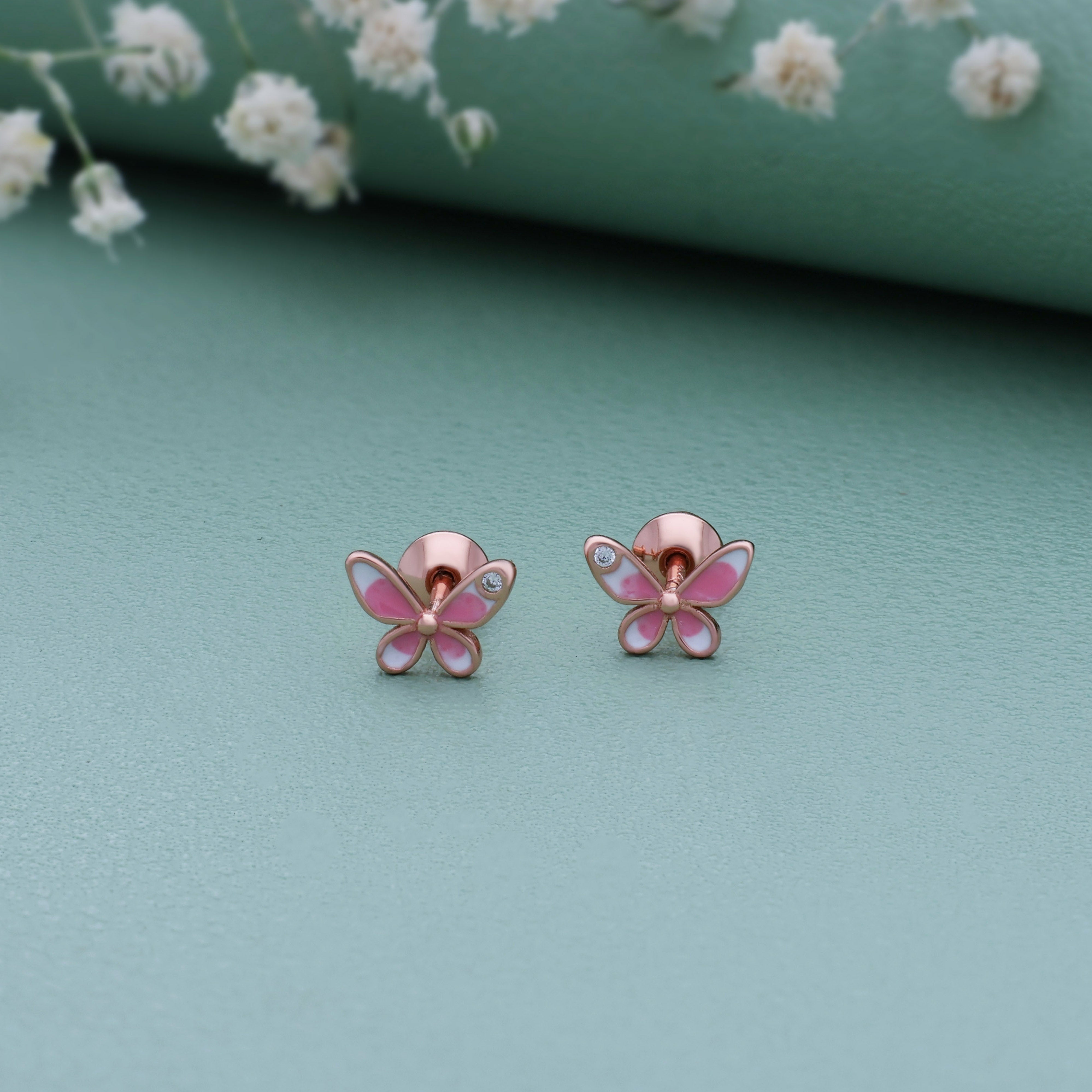 Lovely Butterfly 18K Rose Gold Polish Silver Stud(2+ Yrs)