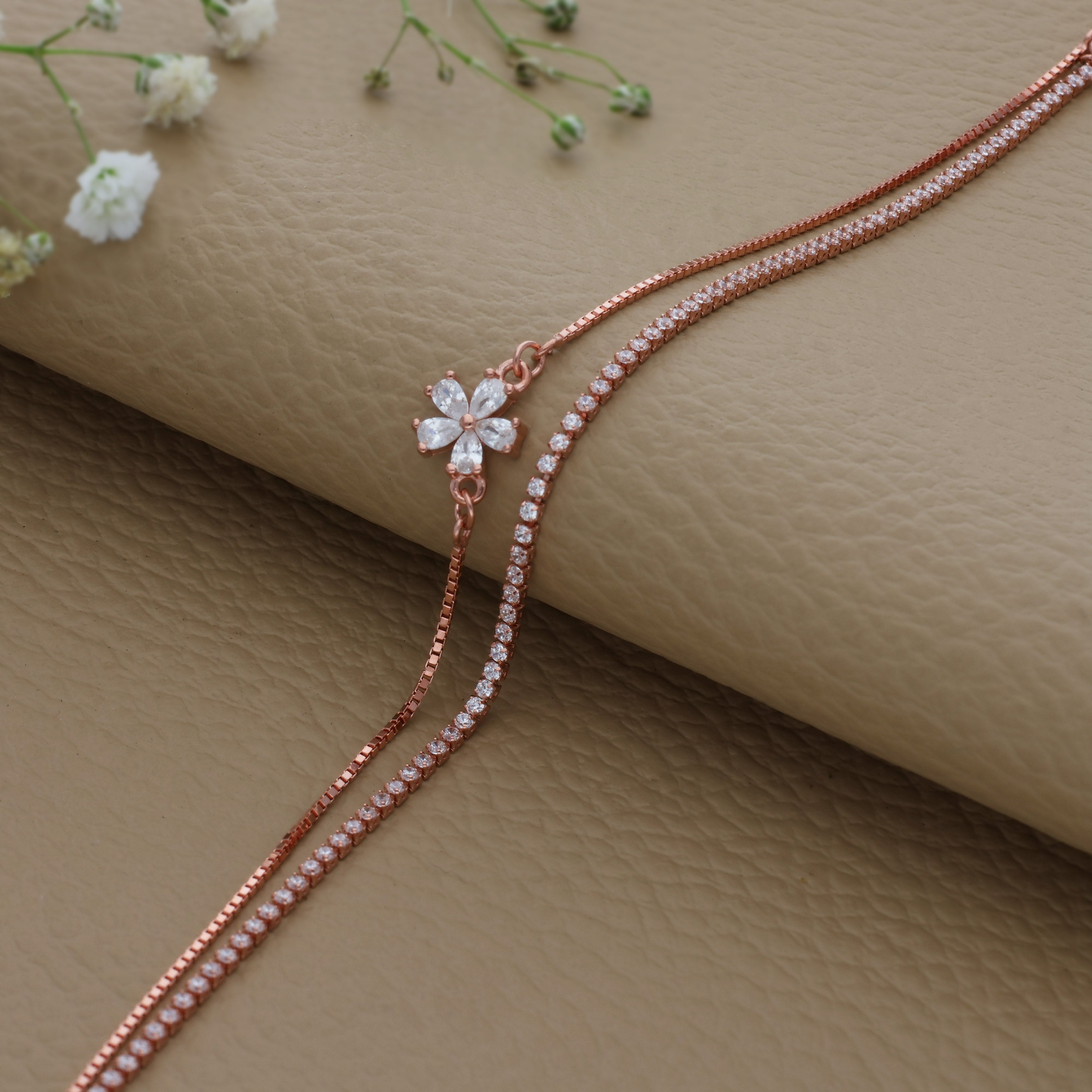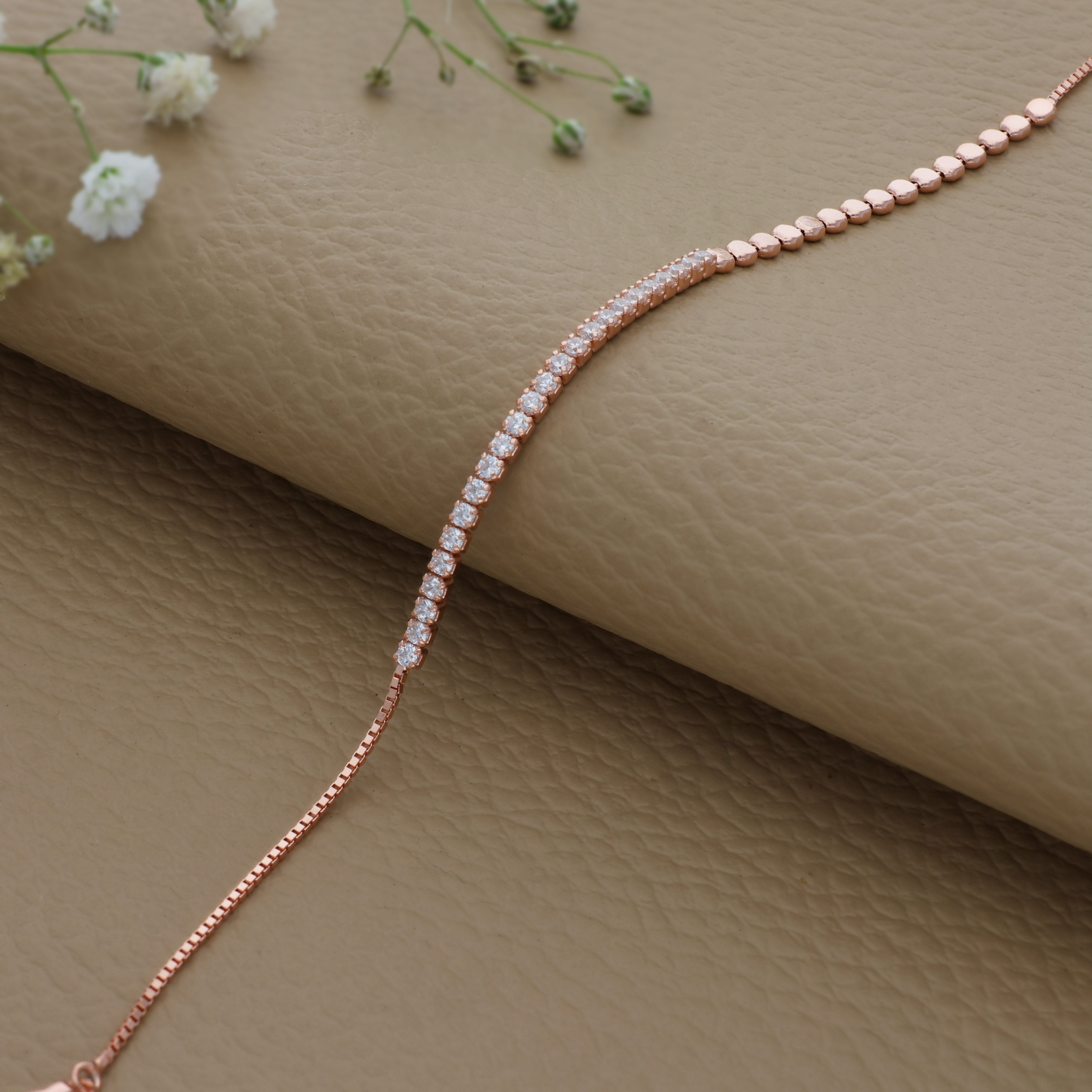 Adorable Rose Gold Polish 925 Silver Bracelet
