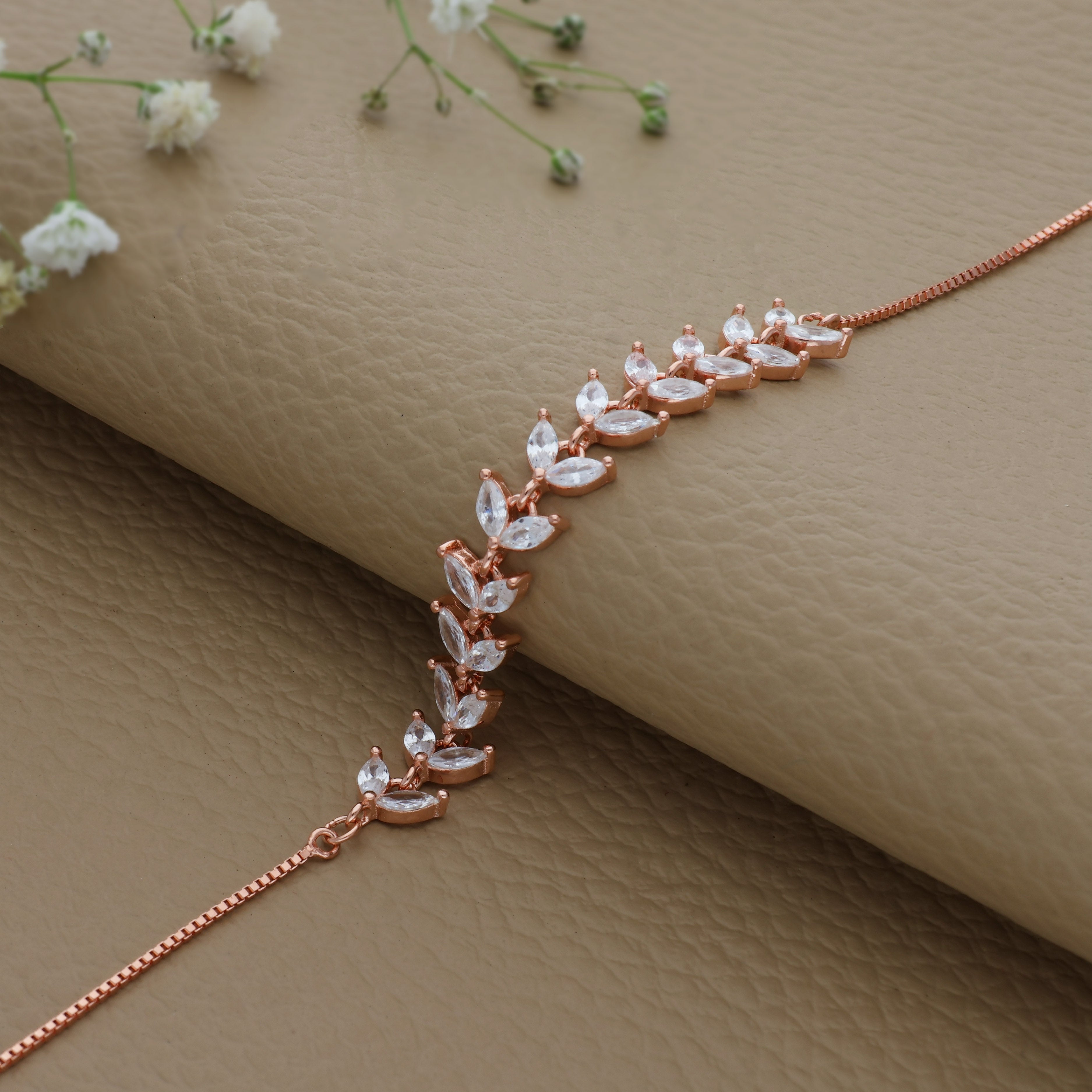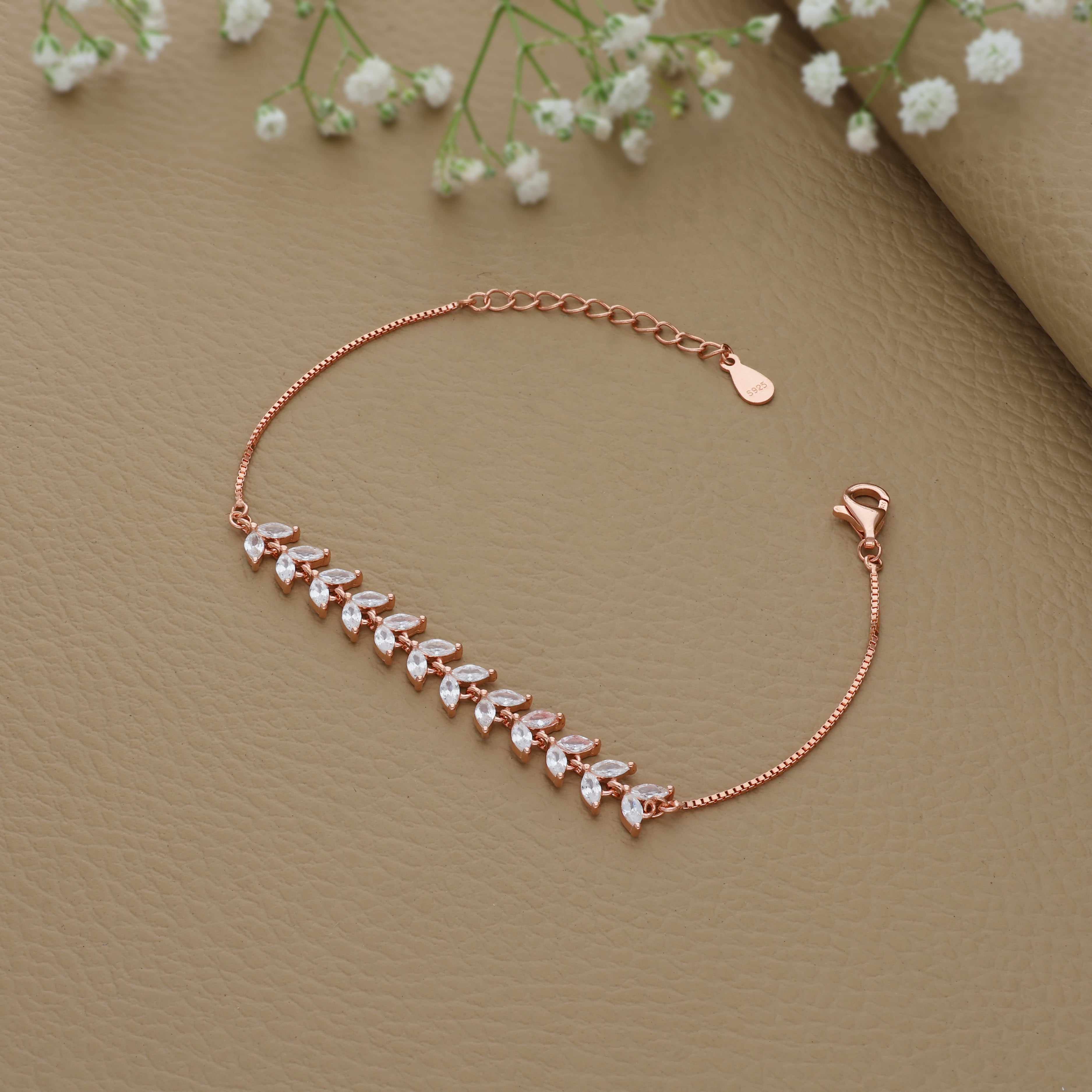 Cute Leafy Trail Rose Gold Polish 925 Silver Bracelet