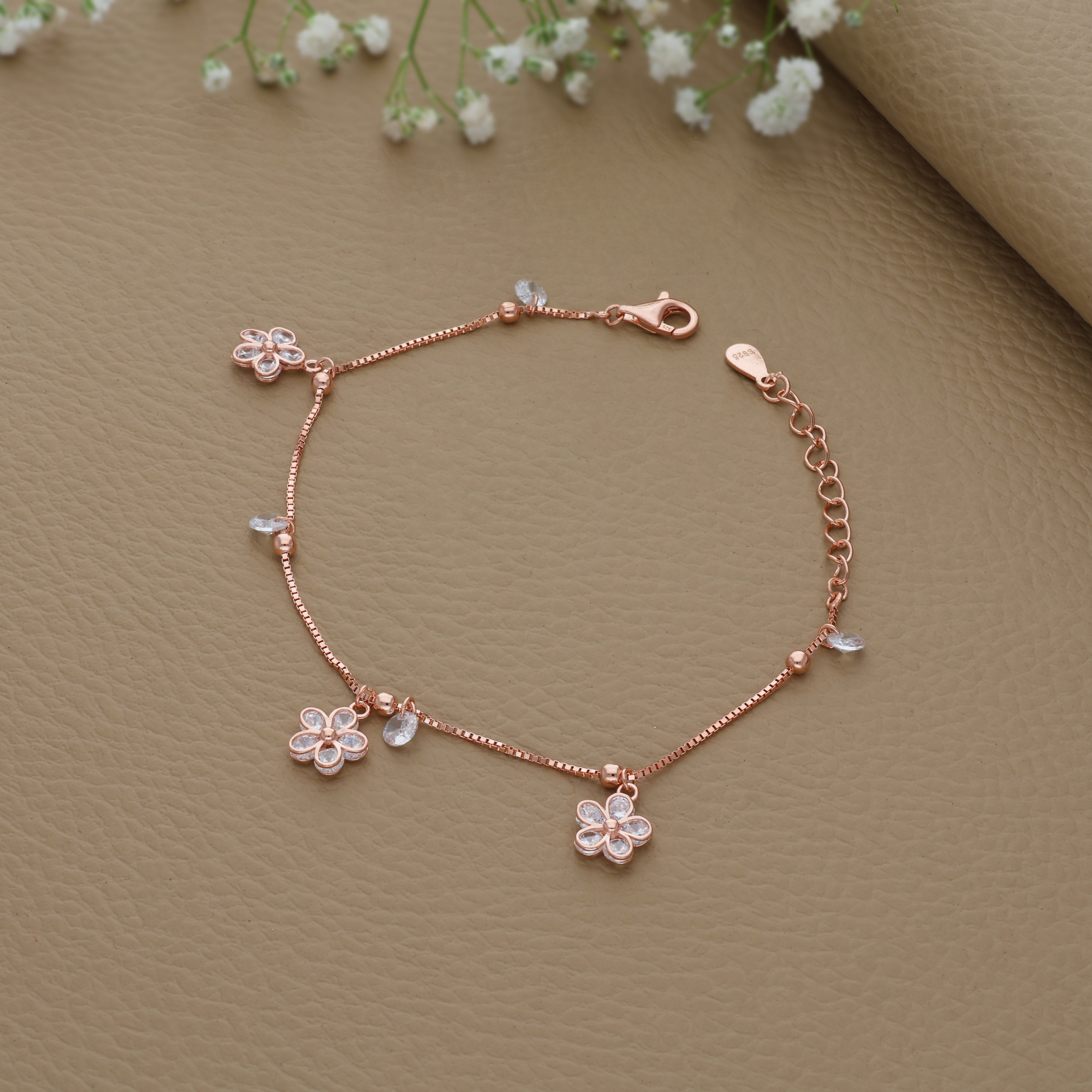Stone Flower Rose Gold Polish 925 Silver Bracelet