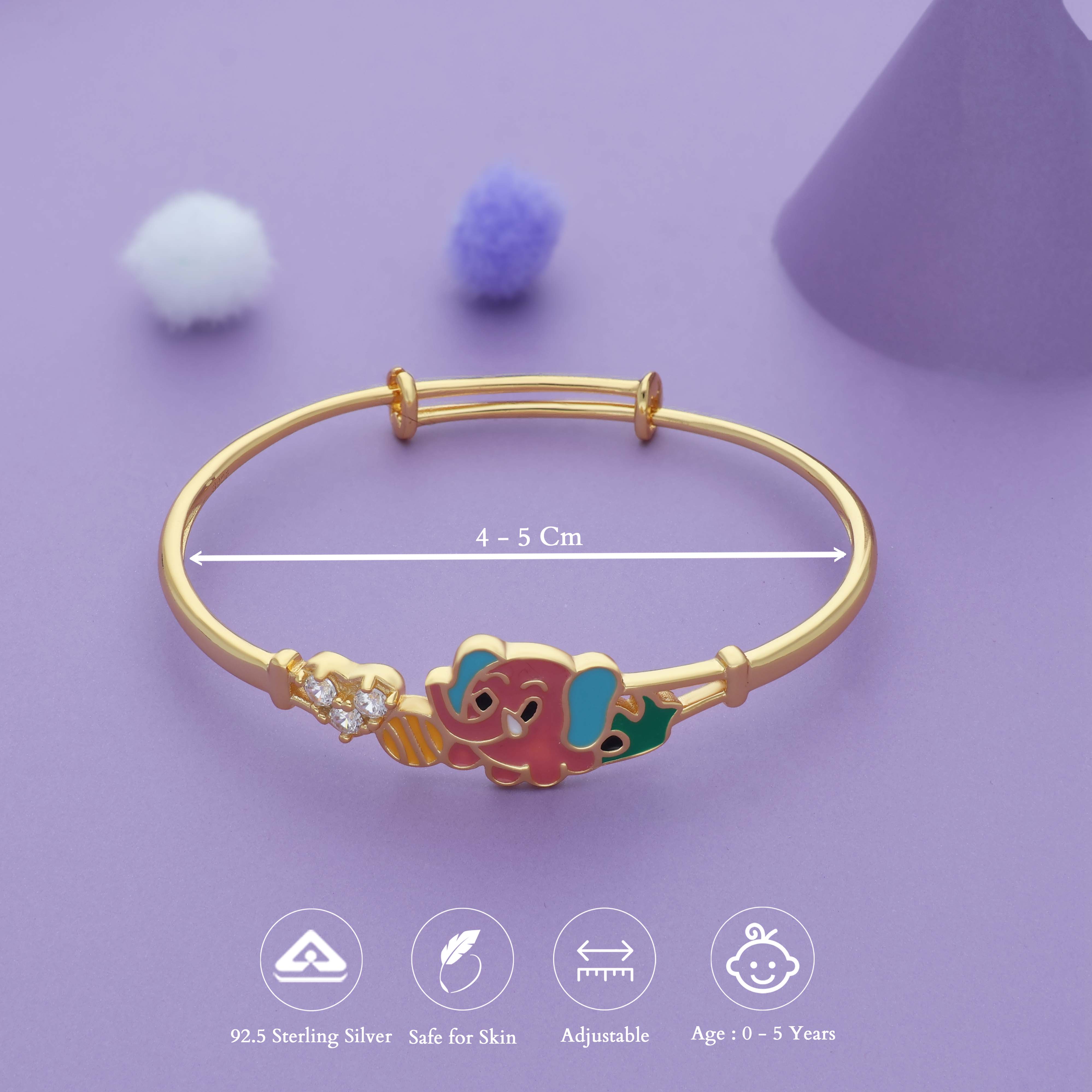 Elephant Heart Charm 18k Gold Polish Silver Kid Bangle (0-5 Yrs)