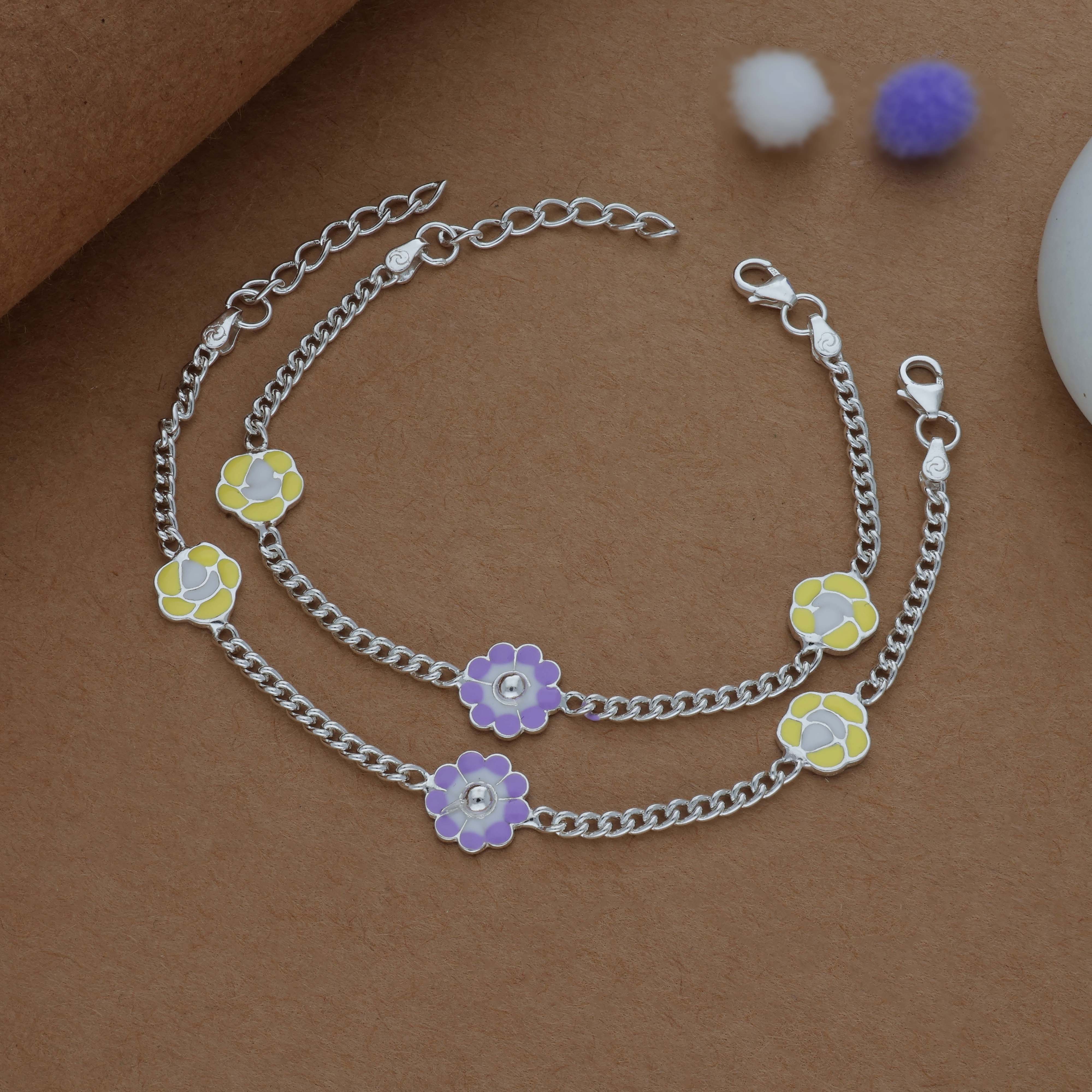 Elegant Petal Silver Anklet(2-5 Yrs)