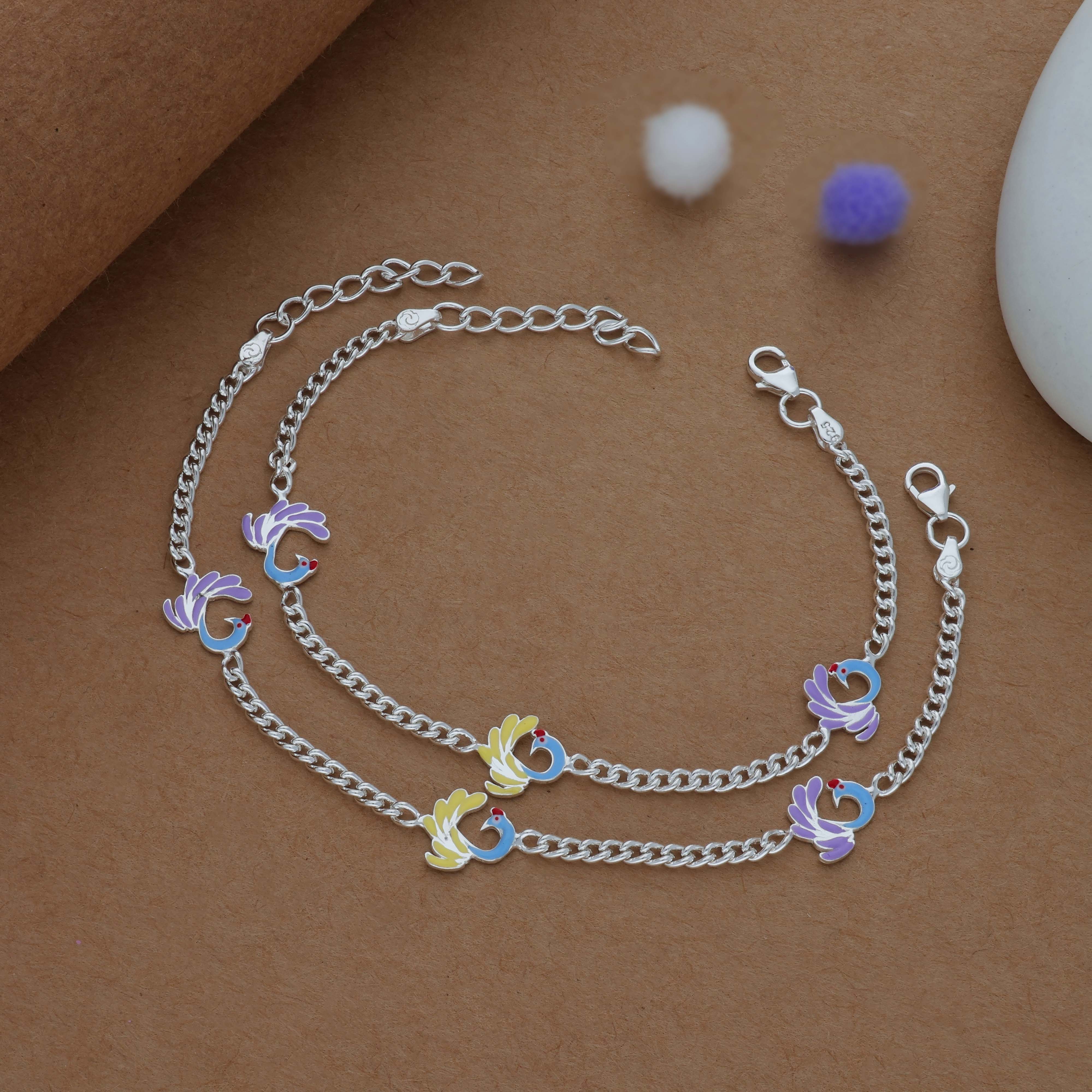 Add a touch of charm to your little one’s steps with this adorable peacock silver anklet. Lightweight, comfortable, and perfect for everyday wear or special occasions. Tiny feet, sparkling joy!