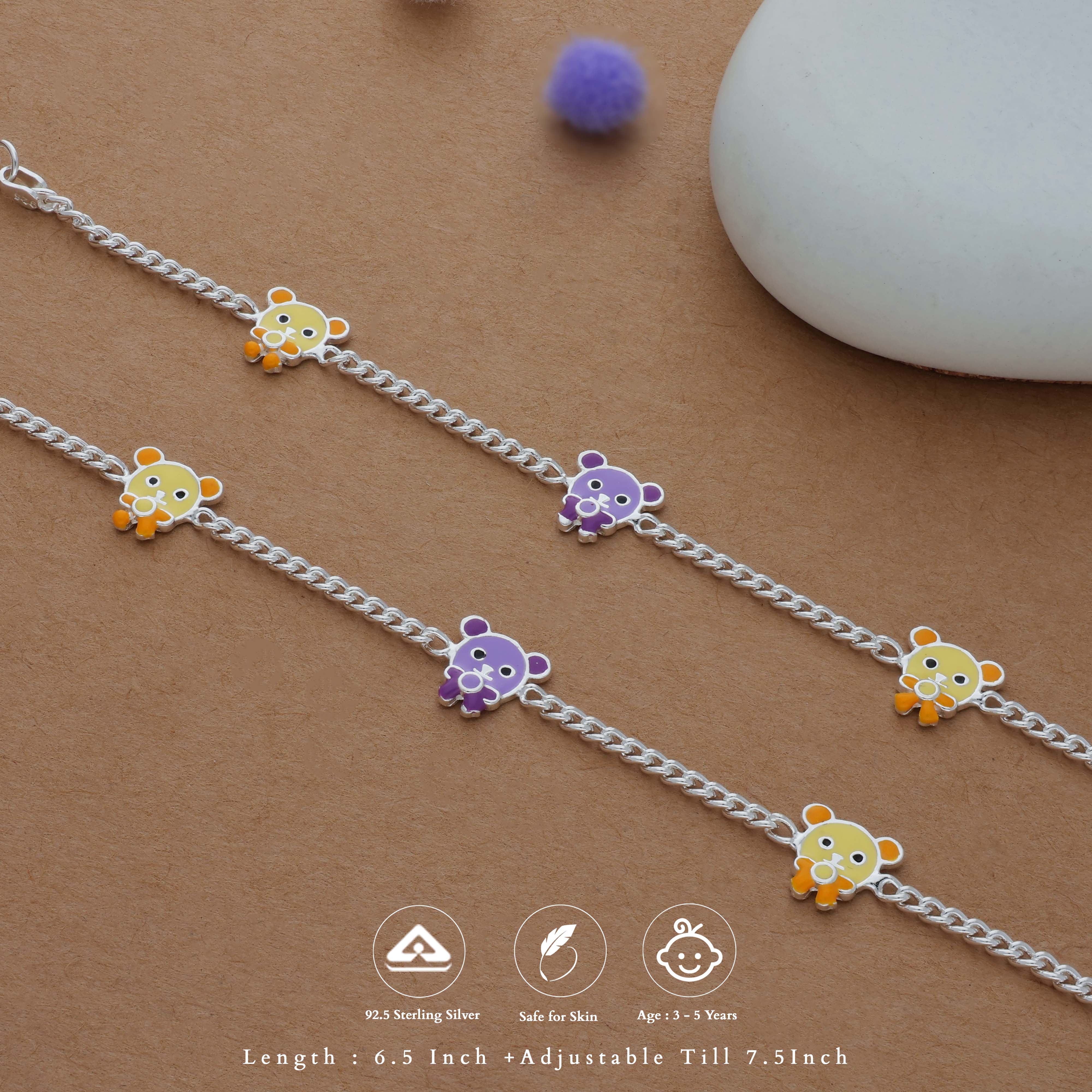 Sweet Teddy Charm Silver Anklet(3-5 Yrs)