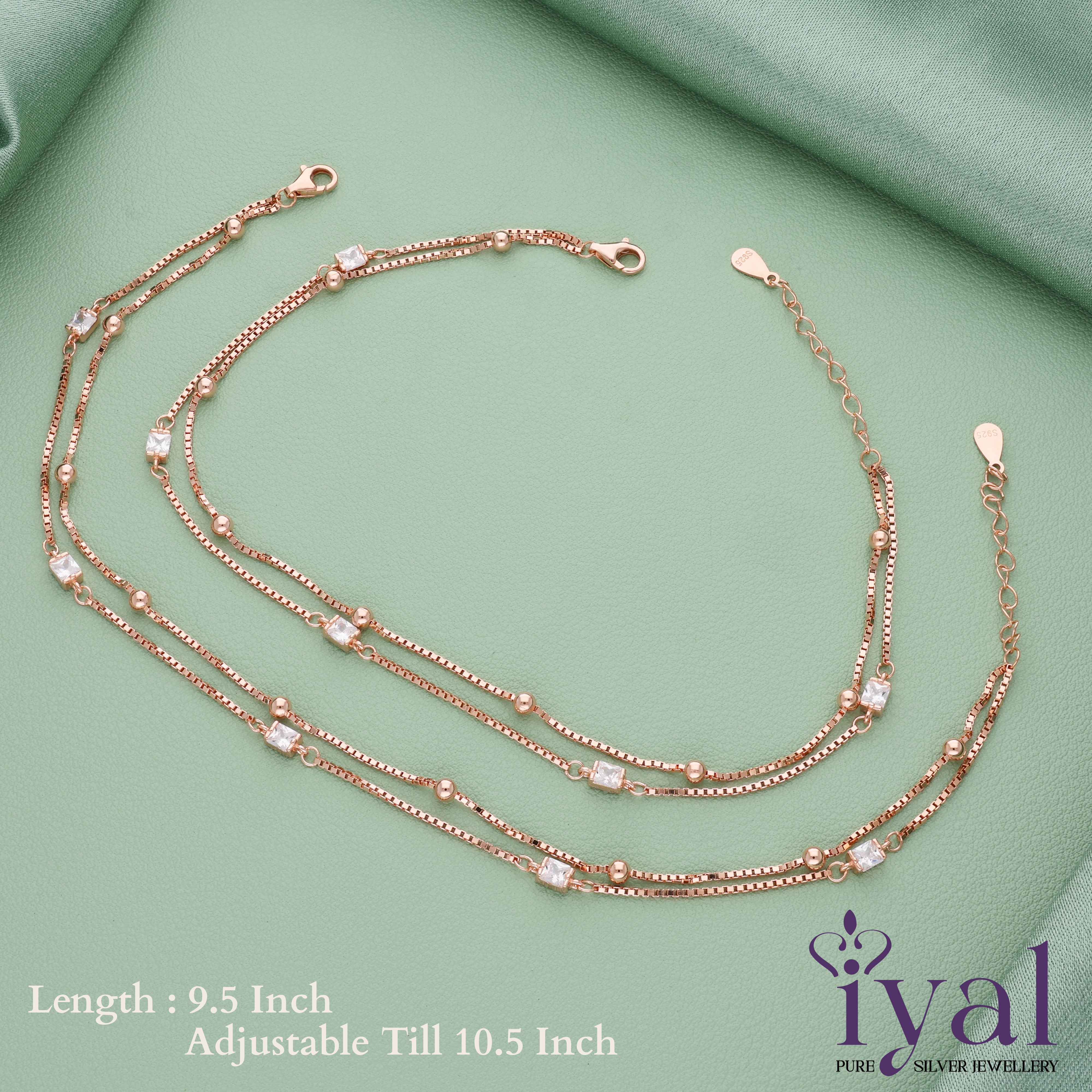 Shimmering Double Layer Rose Gold Polish Silver Anklet