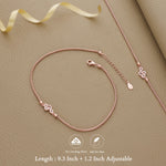 Inspired by the graceful flow of nature, this anklet features a delicate vine design polished in warm rose gold. Handcrafted in pure 92.5 silver with hallmark purity, it rests gently on the skin hypoallergenic and comfortable for everyday wear. A radiant pair that adds elegance and charm, perfect to complement both casual and festive looks.