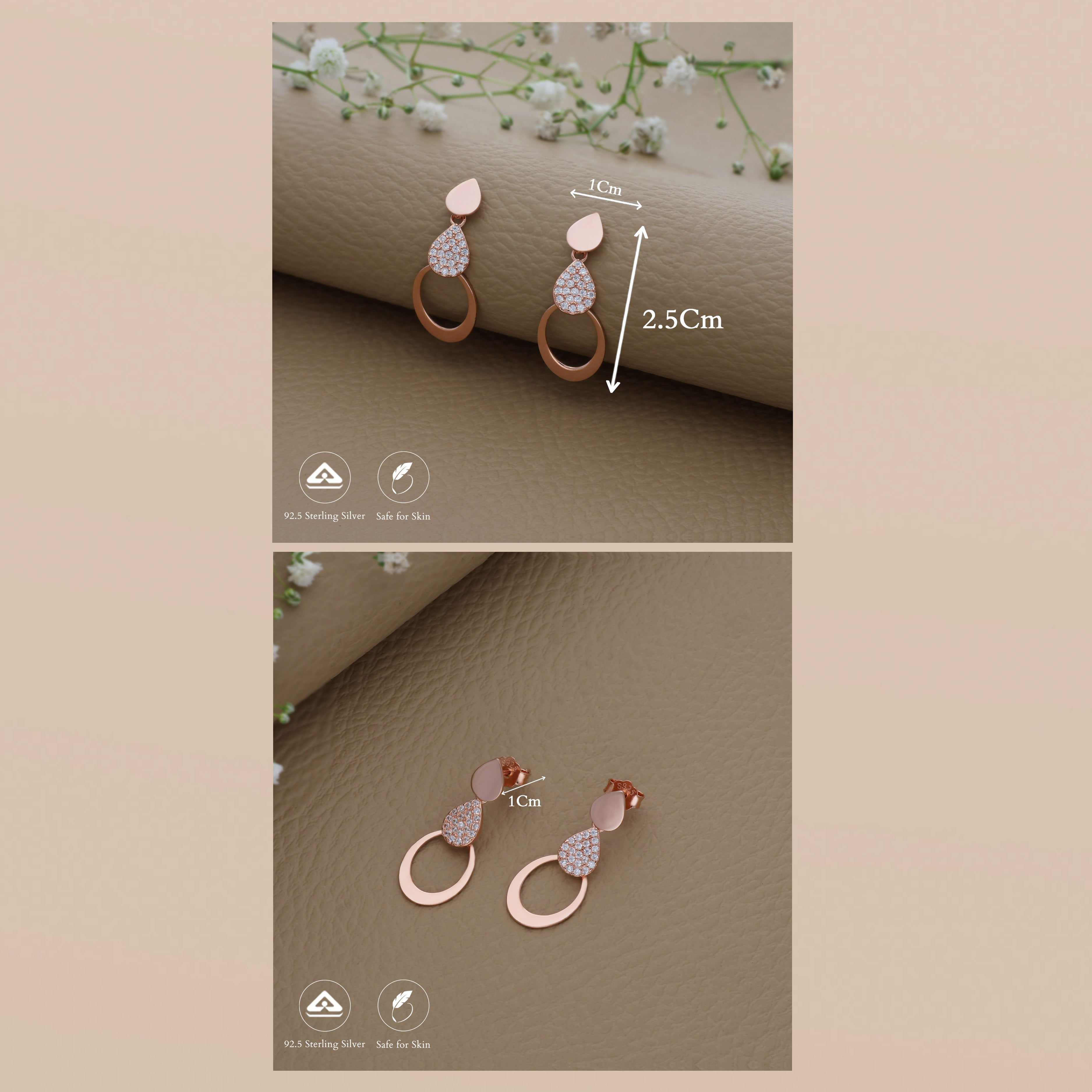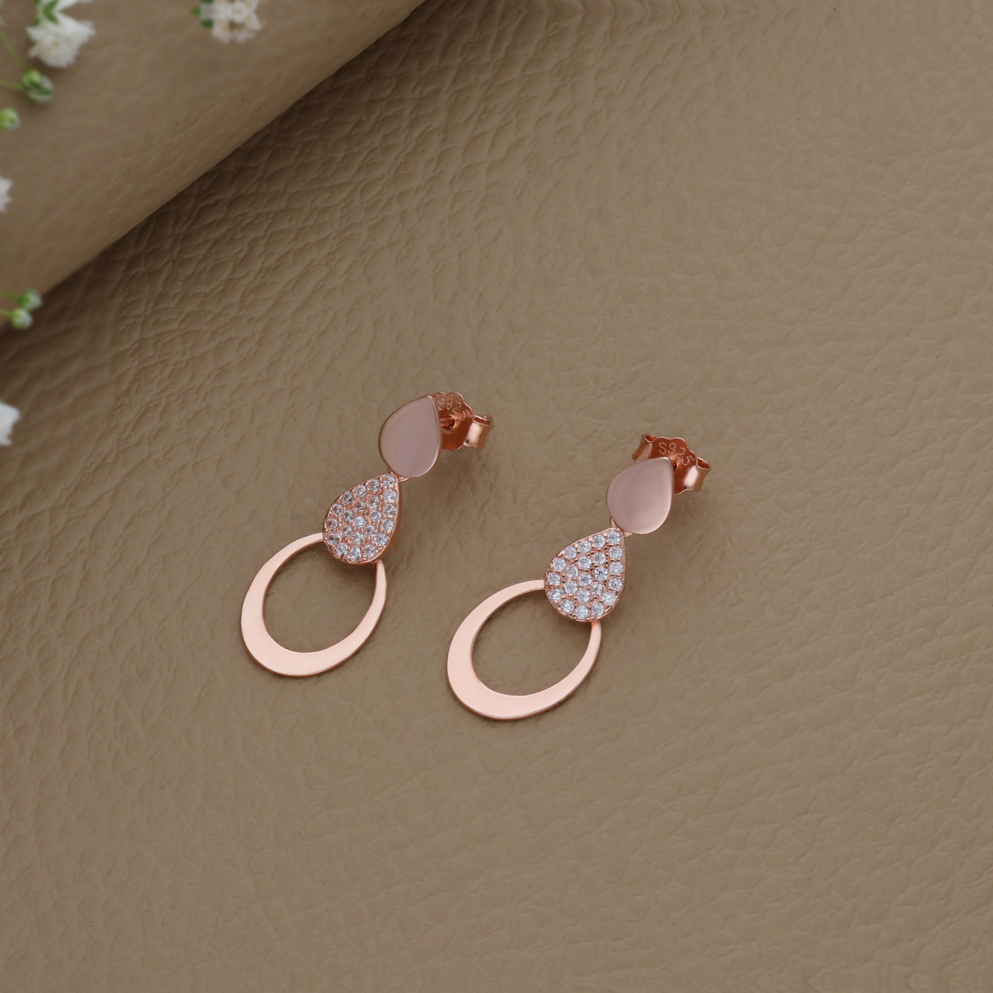 Enchanting Rose Gold Polish 925 Silver Drop Earring