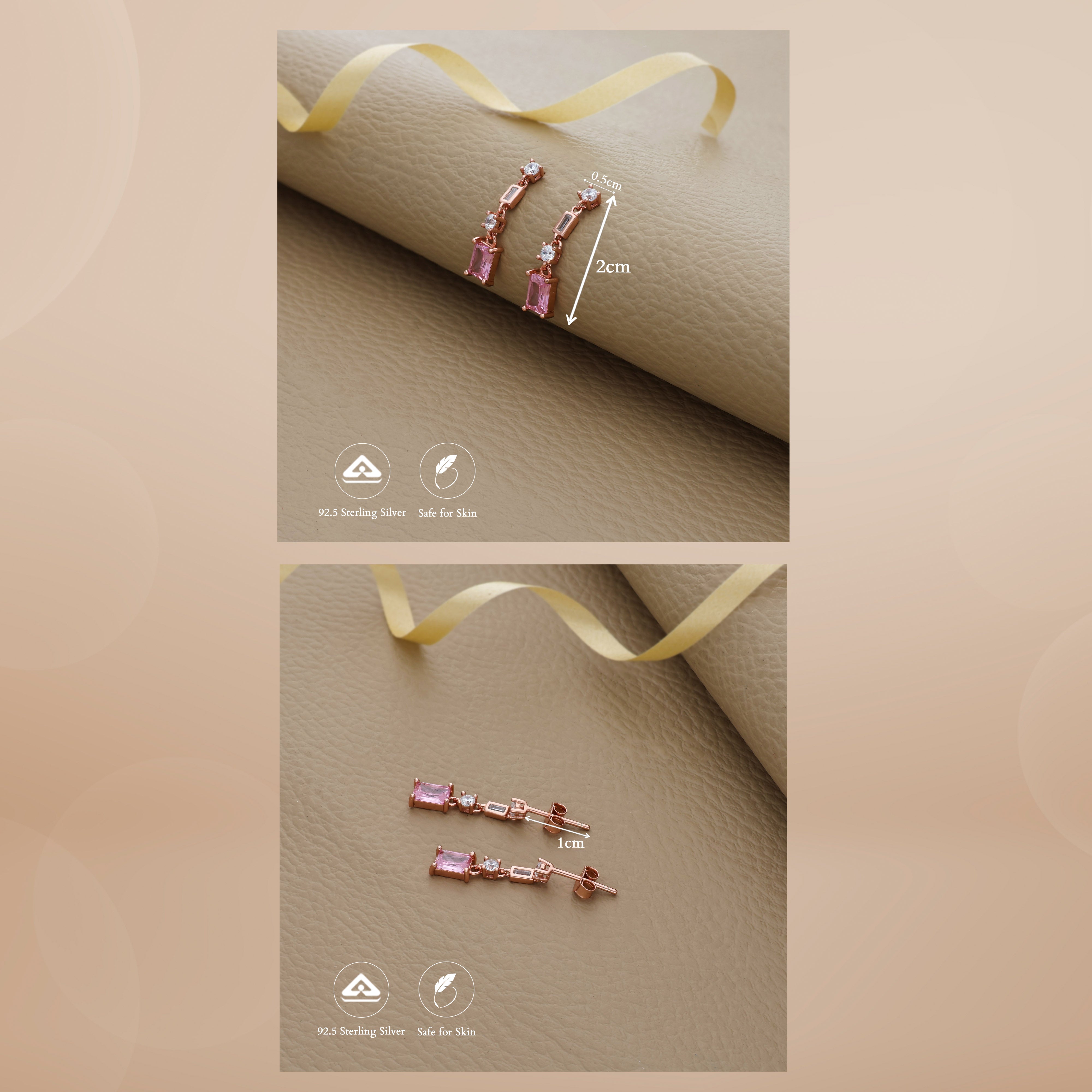 Linear Pink Rose Gold 925 Silver Drop Earring