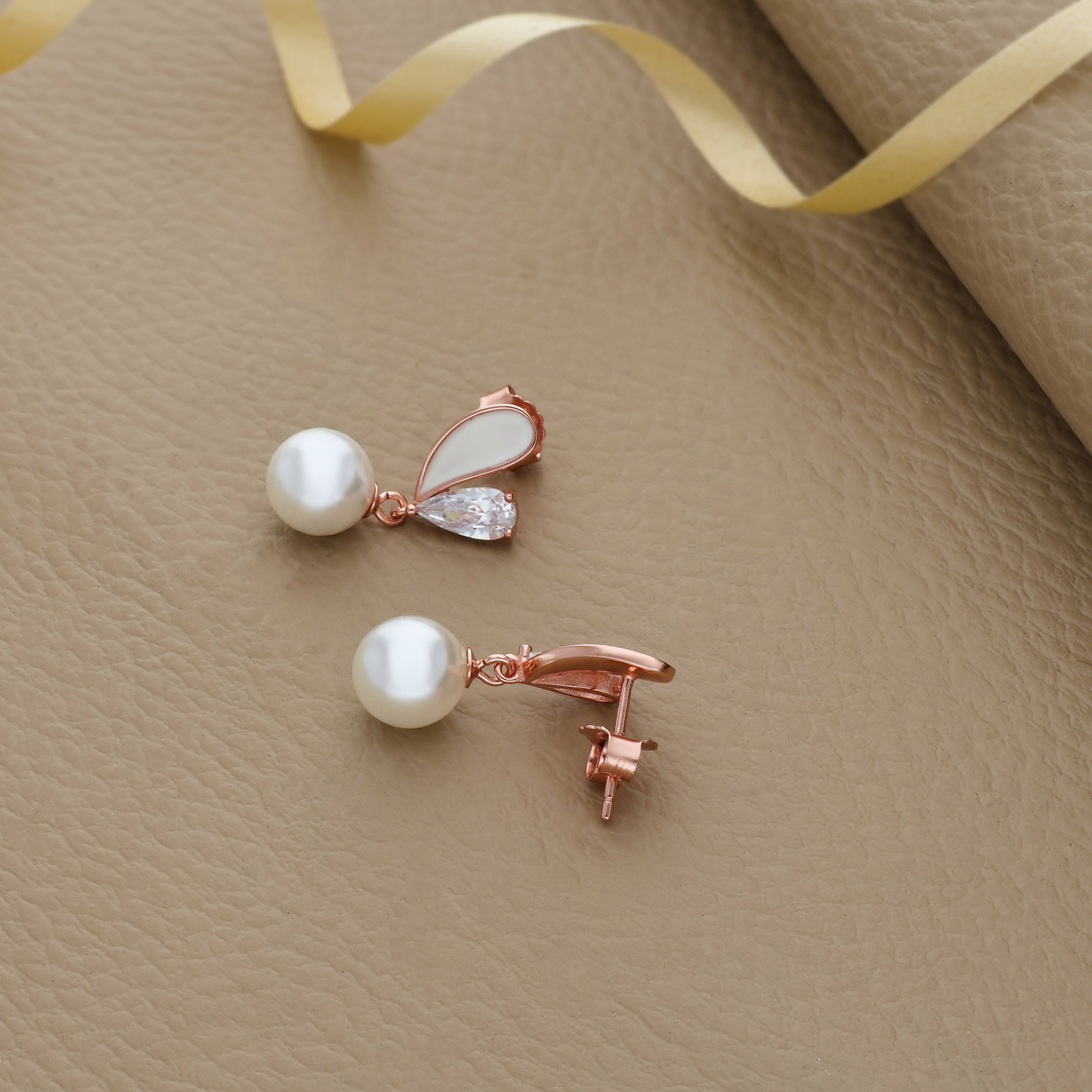 Radiate elegance with the Shimmering Rose Gold Drop Earring. Adorned with sparkling zircon stones, it catches the light beautifully, adding a timeless shimmer to your look. Gentle on the skin and designed for all-day comfort, this piece is perfect for both casual and special occasions.