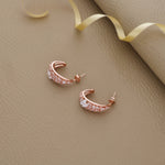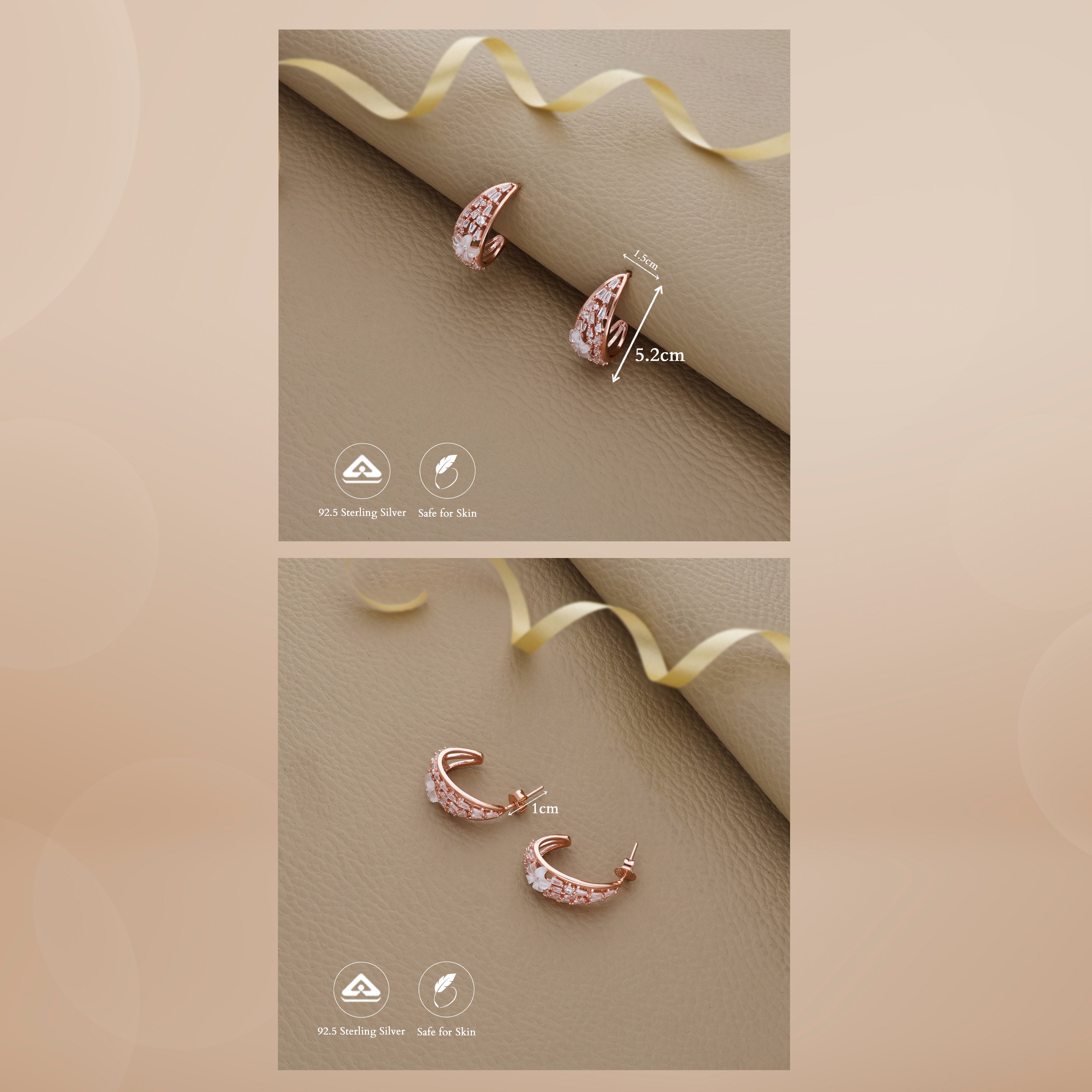 Step into effortless elegance with the Shine On Rose Gold Polish Silver Hoop Earrings. These hoops shimmer with premium-quality zircon stones that catch every ray of light. Gentle on the skin and designed for comfort, they are perfect for office, college, or casual outings, adding a subtle sparkle to any look.
