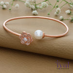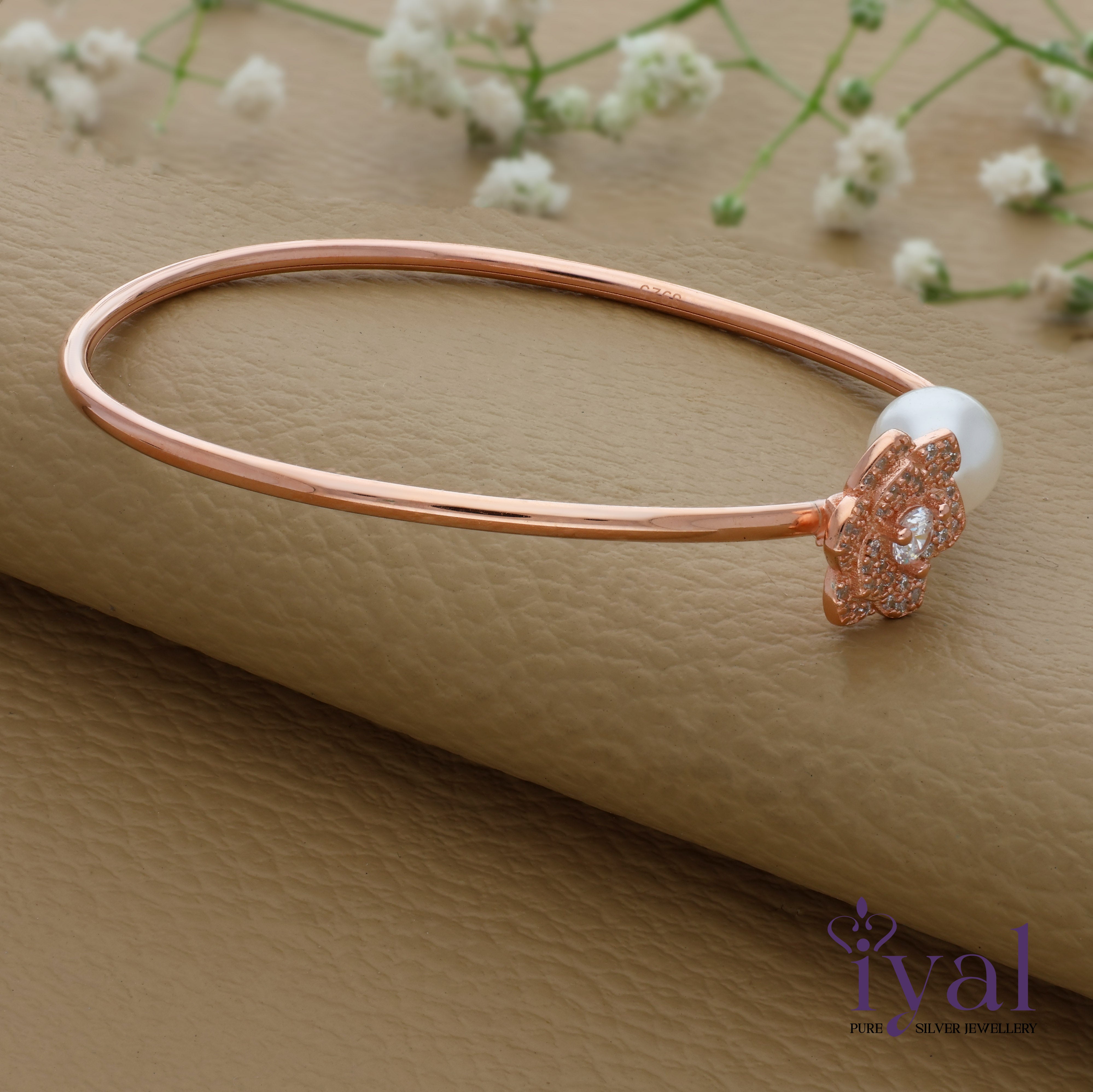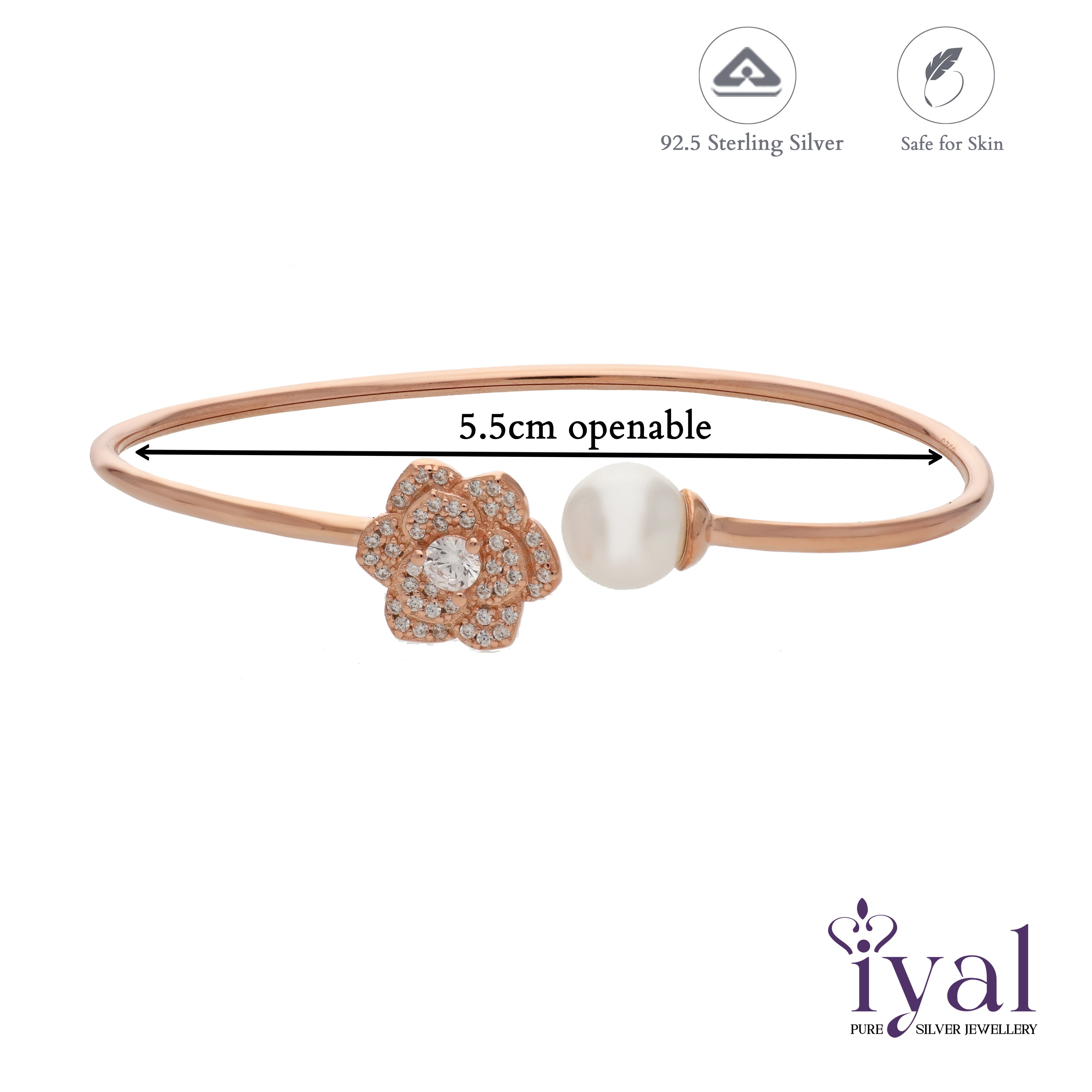 Pearl Open Flower Rose Gold Polish 925 Silver Kada