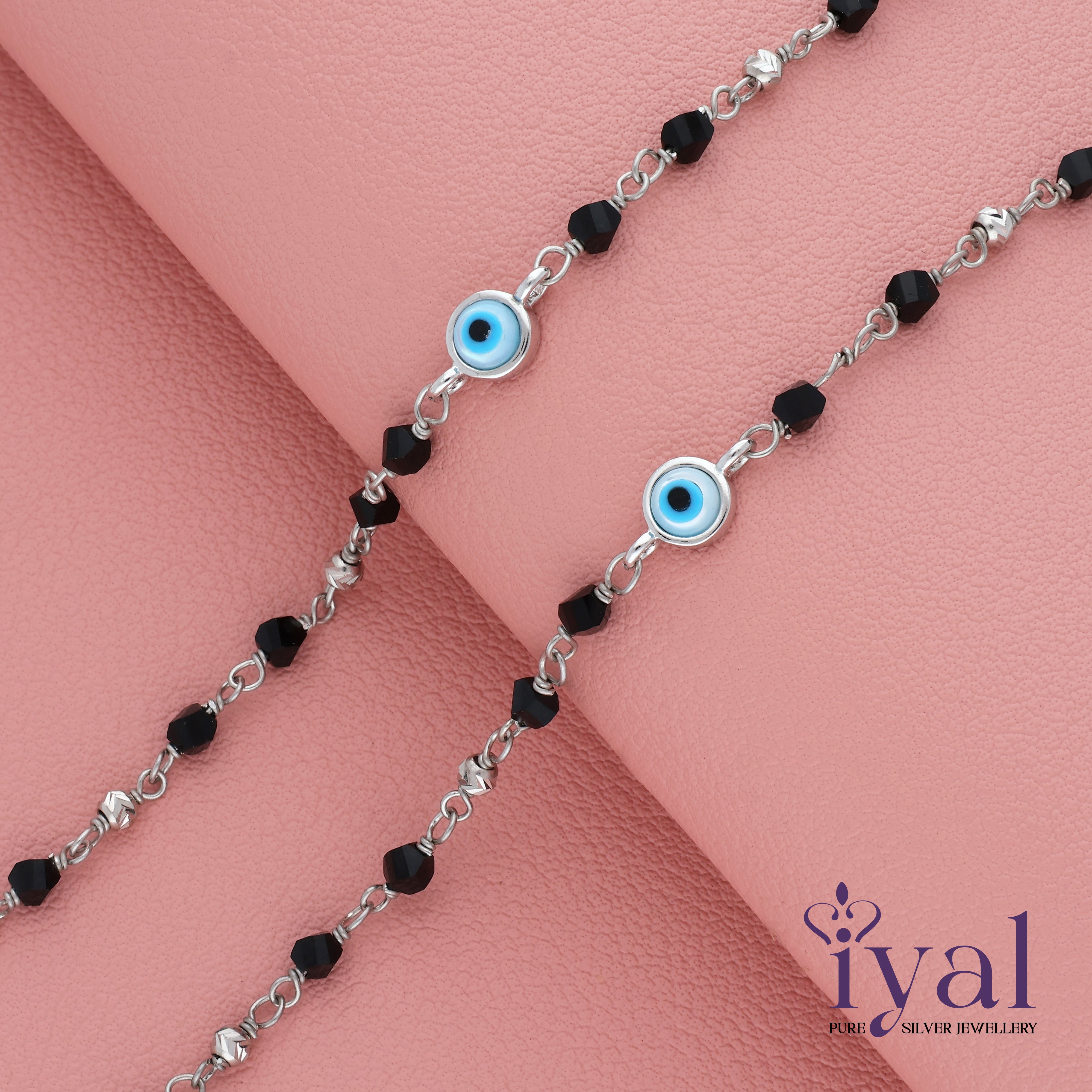 Oxidized Evil Eye Nazariya Silver Anklet for baby(0 - 6months)