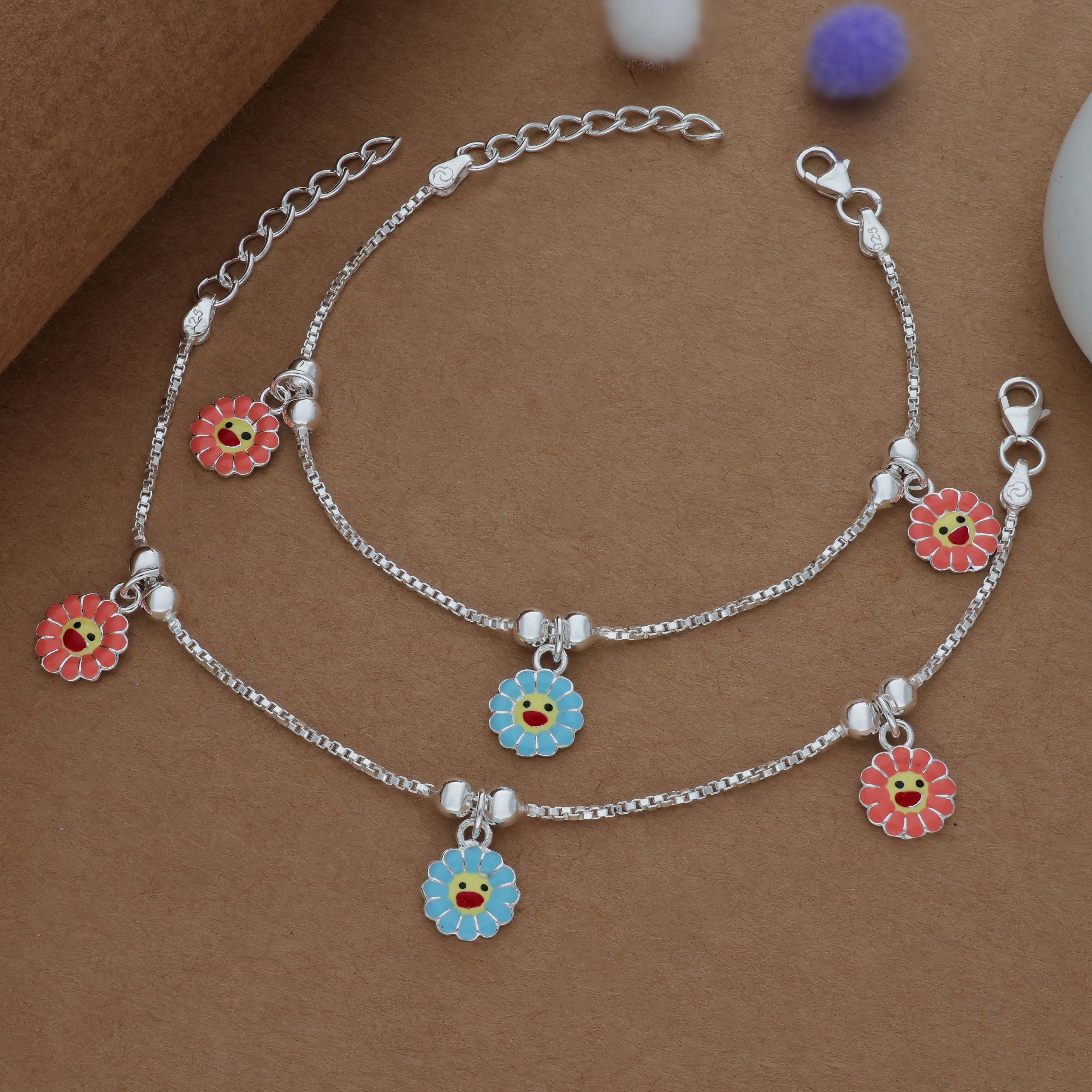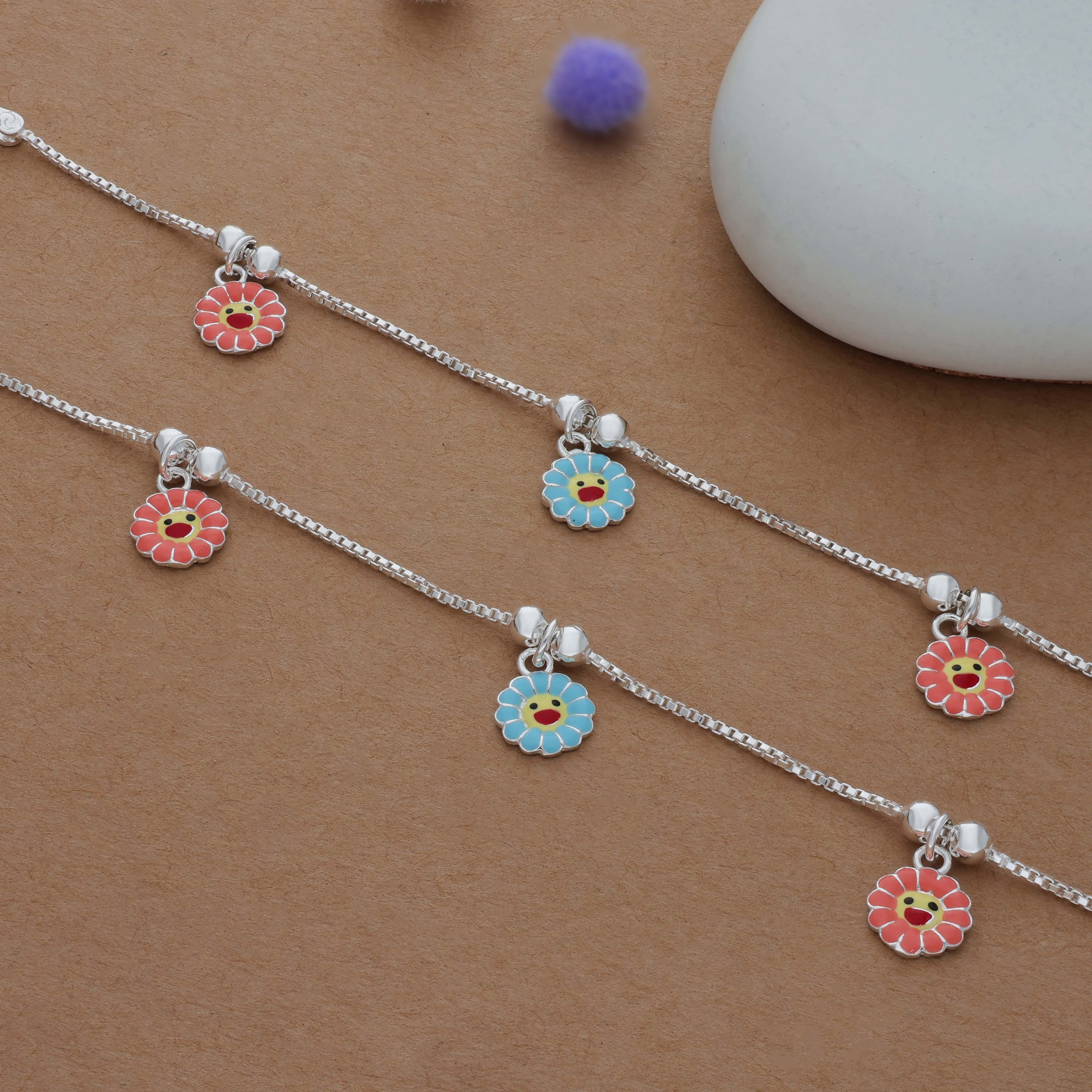 Lovely Flower 925 Silver Anklet for Kids(6month - 3Years)