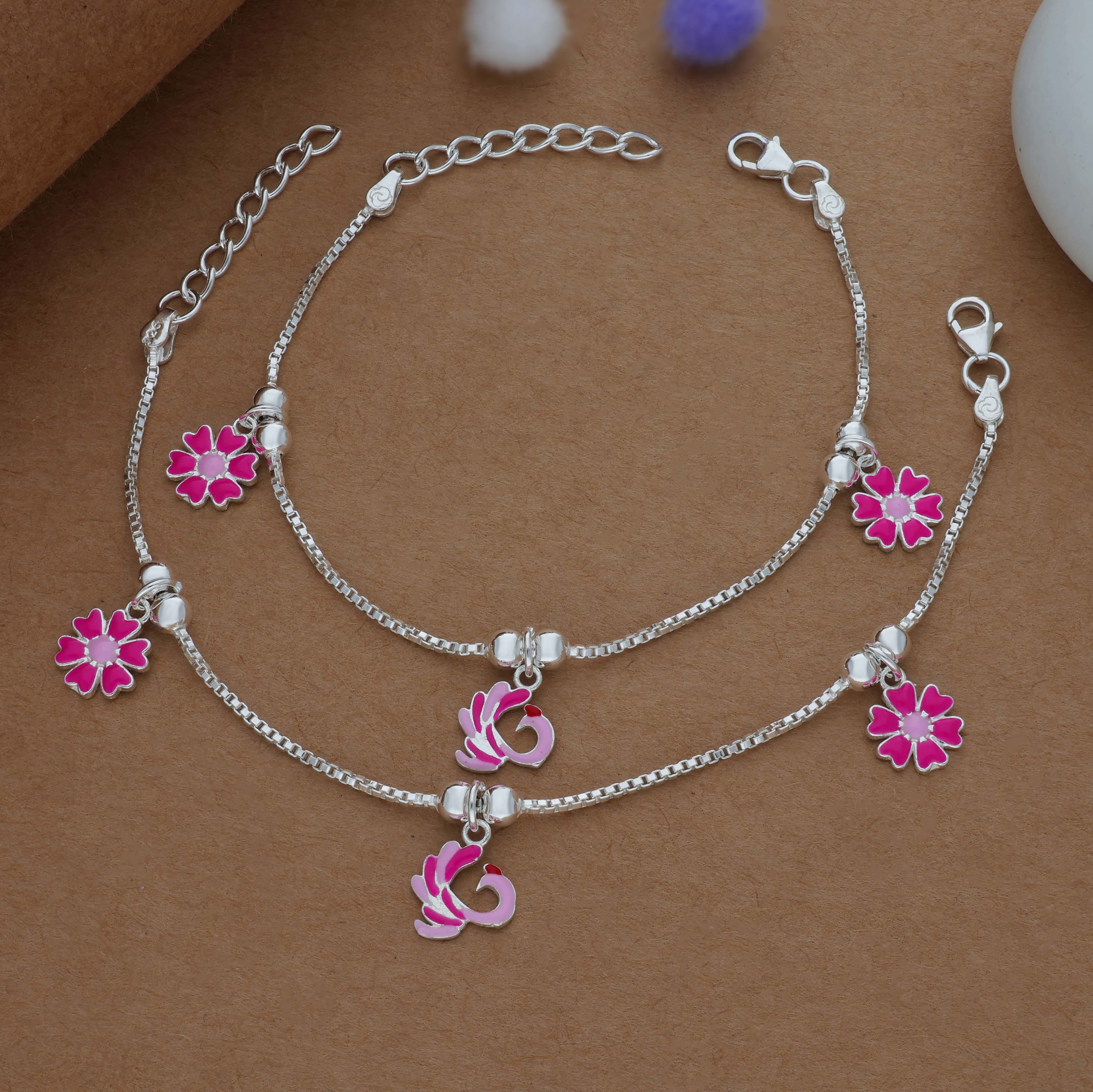 Tiny Flower with Peacock Silver Anklet(3-5 Yrs)