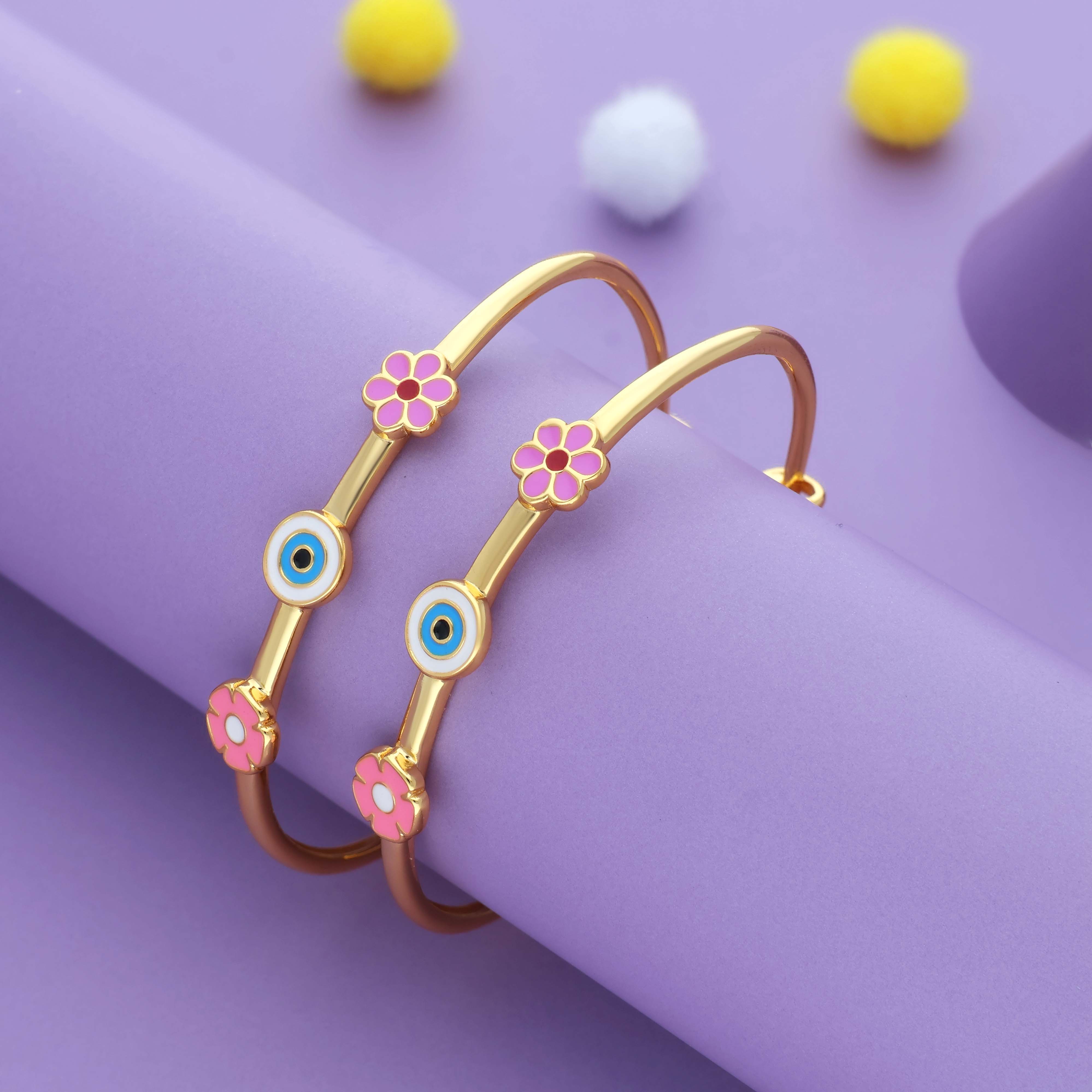 Let your child sparkle with grace and positivity — the Bloom Shield Bangle is more than adornment; it’s a blessing wrapped in beauty