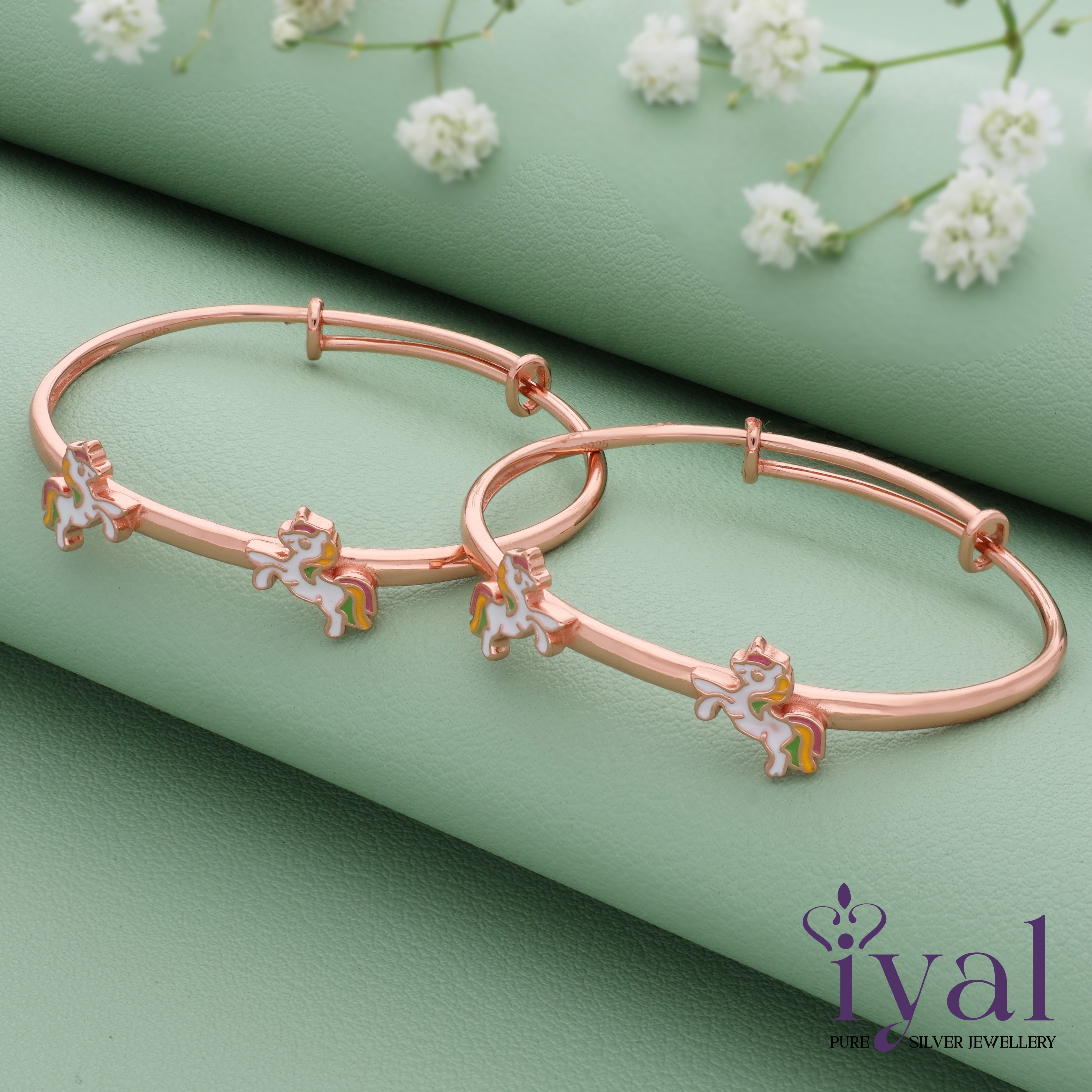 Unicorn 18k Rose Gold Polish Silver Kid Bangle(0 - 5Yr)