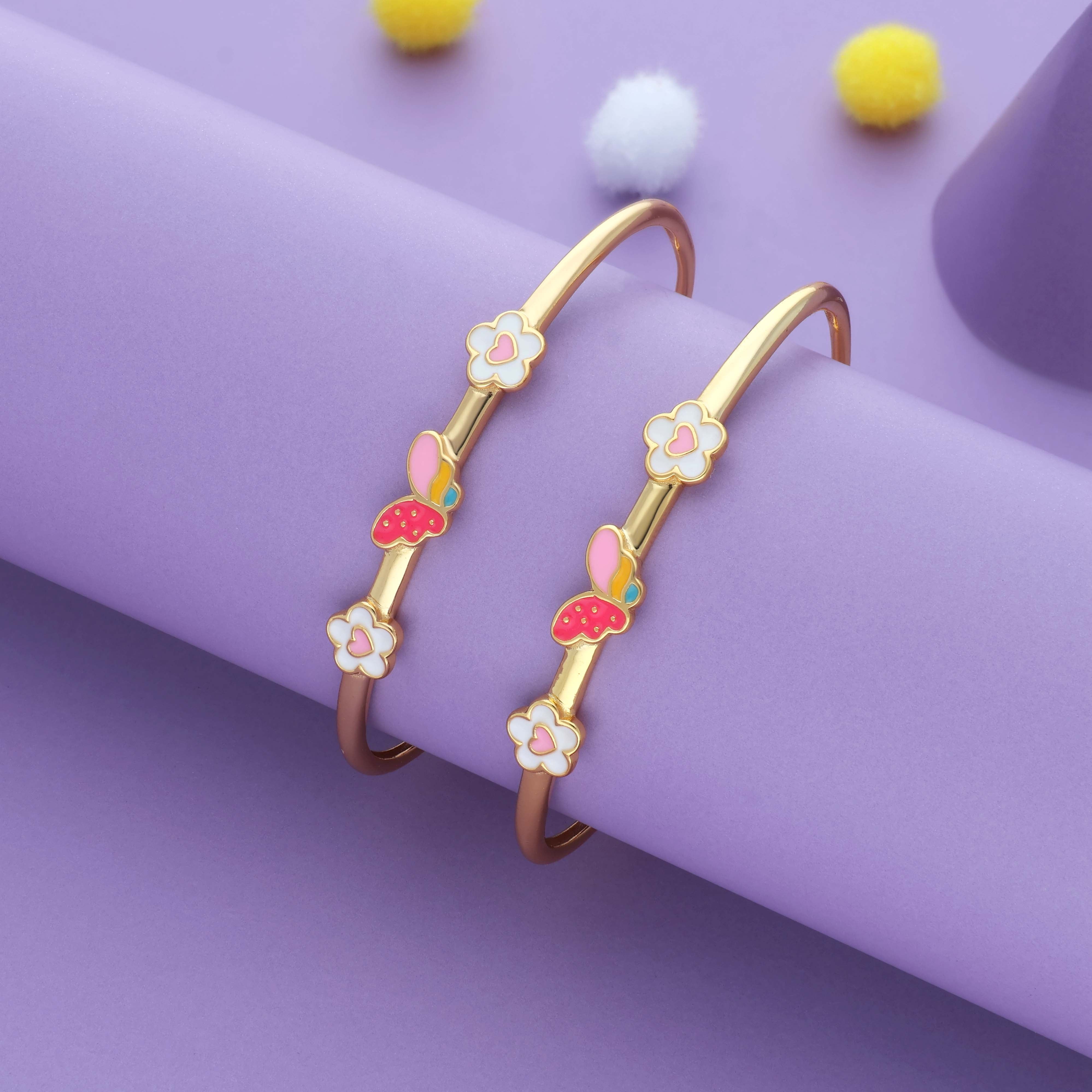 Twin Bloom Butterfly 18K Gold Polish Silver Kid Bangle(0–5 Yr)