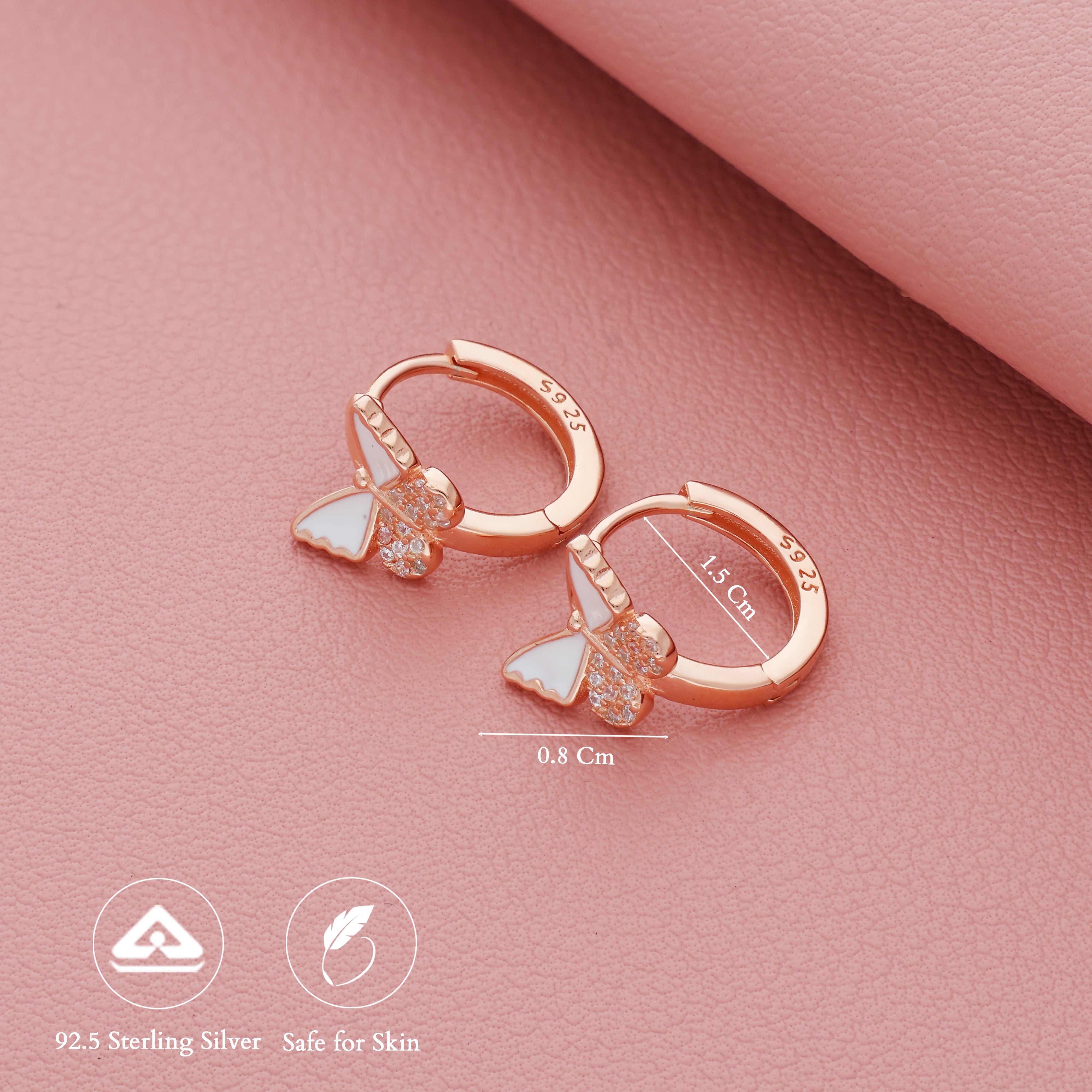 Dainty Butterfly 14K Rose Gold Polish Silver Hoop(5+ Yrs)