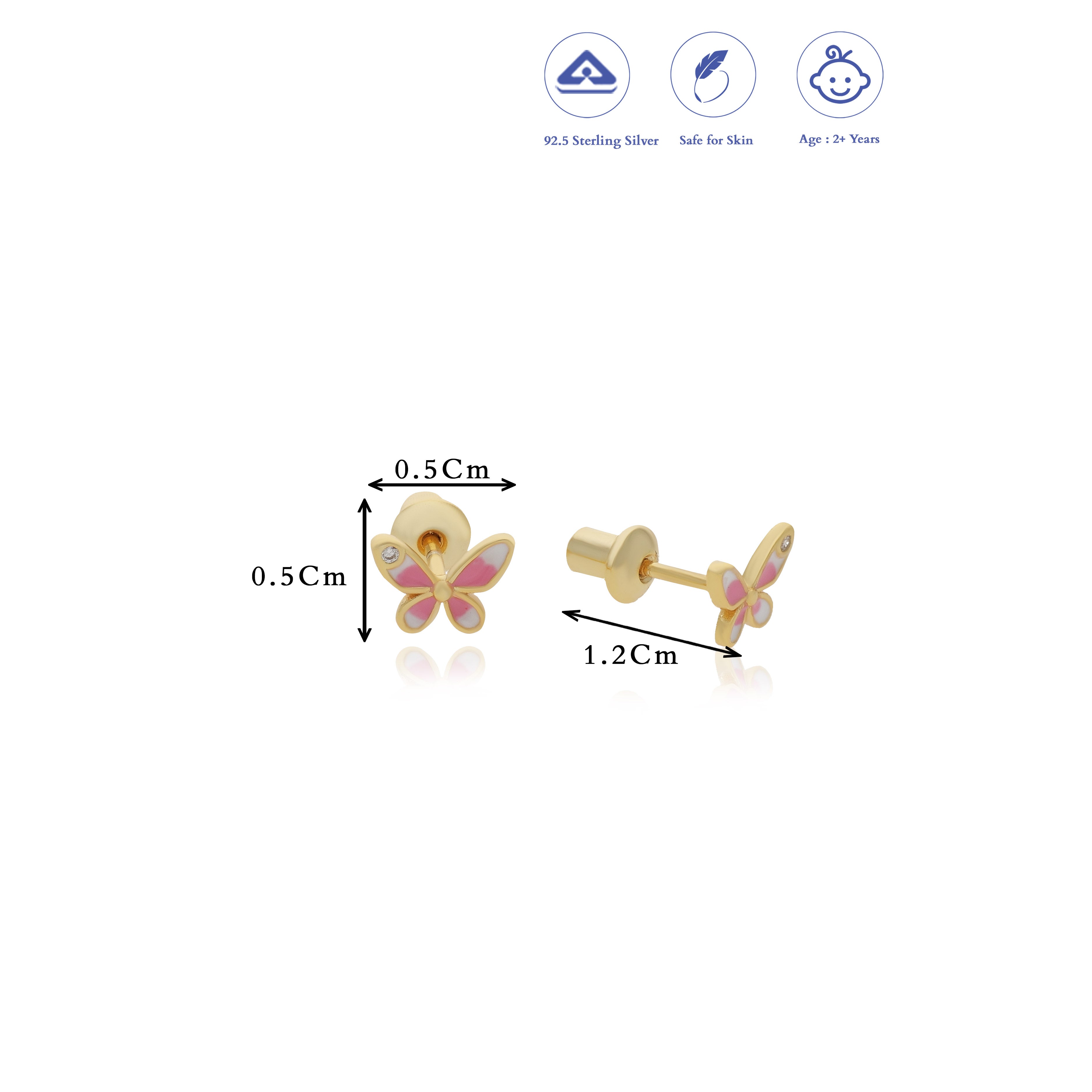 Lovely Butterfly 18K Gold Polish Silver Stud for Kids(2+ Yrs)
