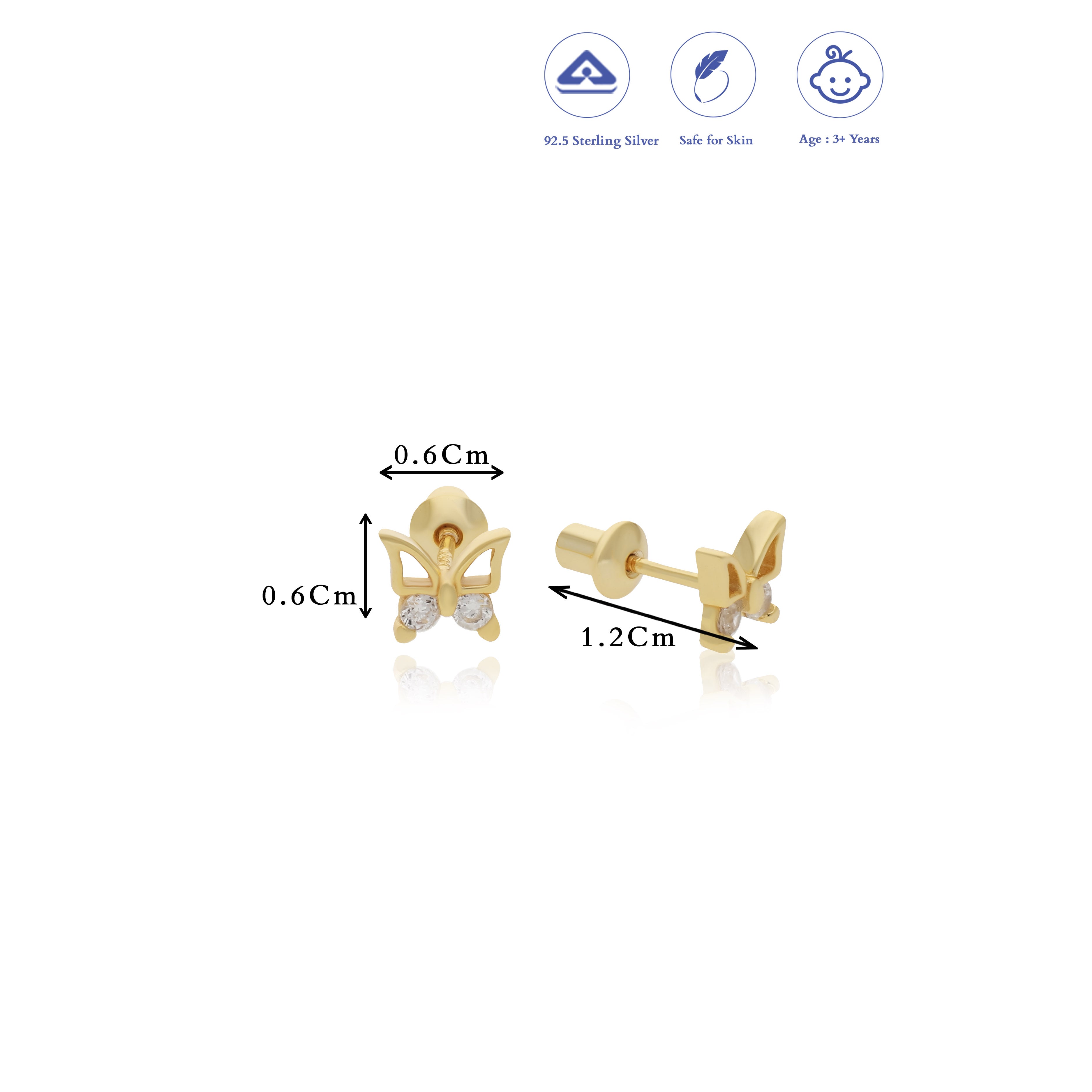Stunning Butterfly 18K Gold Polish Silver Stud(3+ Yrs)