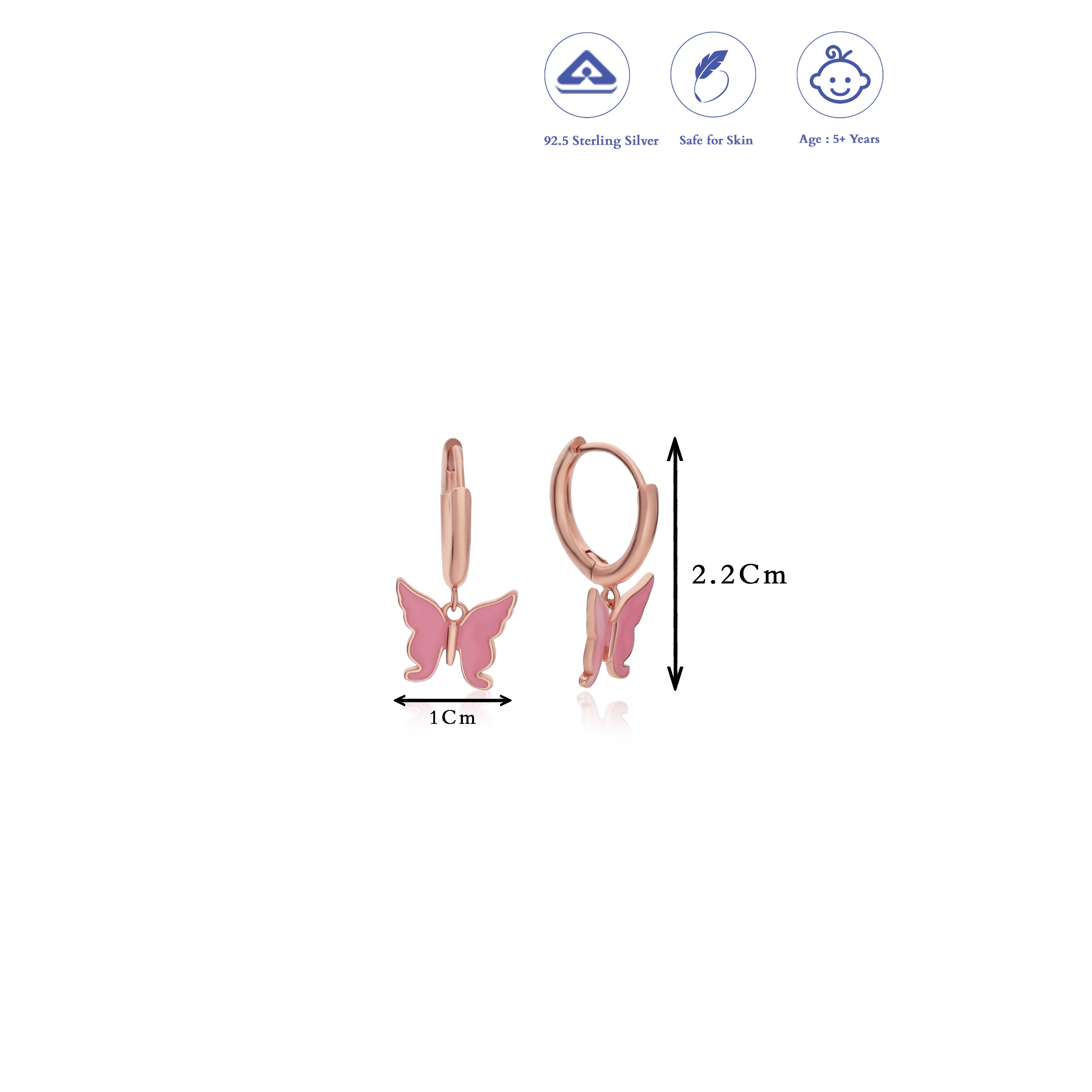 Pretty Butterfly 18K Rose Gold Polish Silver Hoop (5+ Yrs)