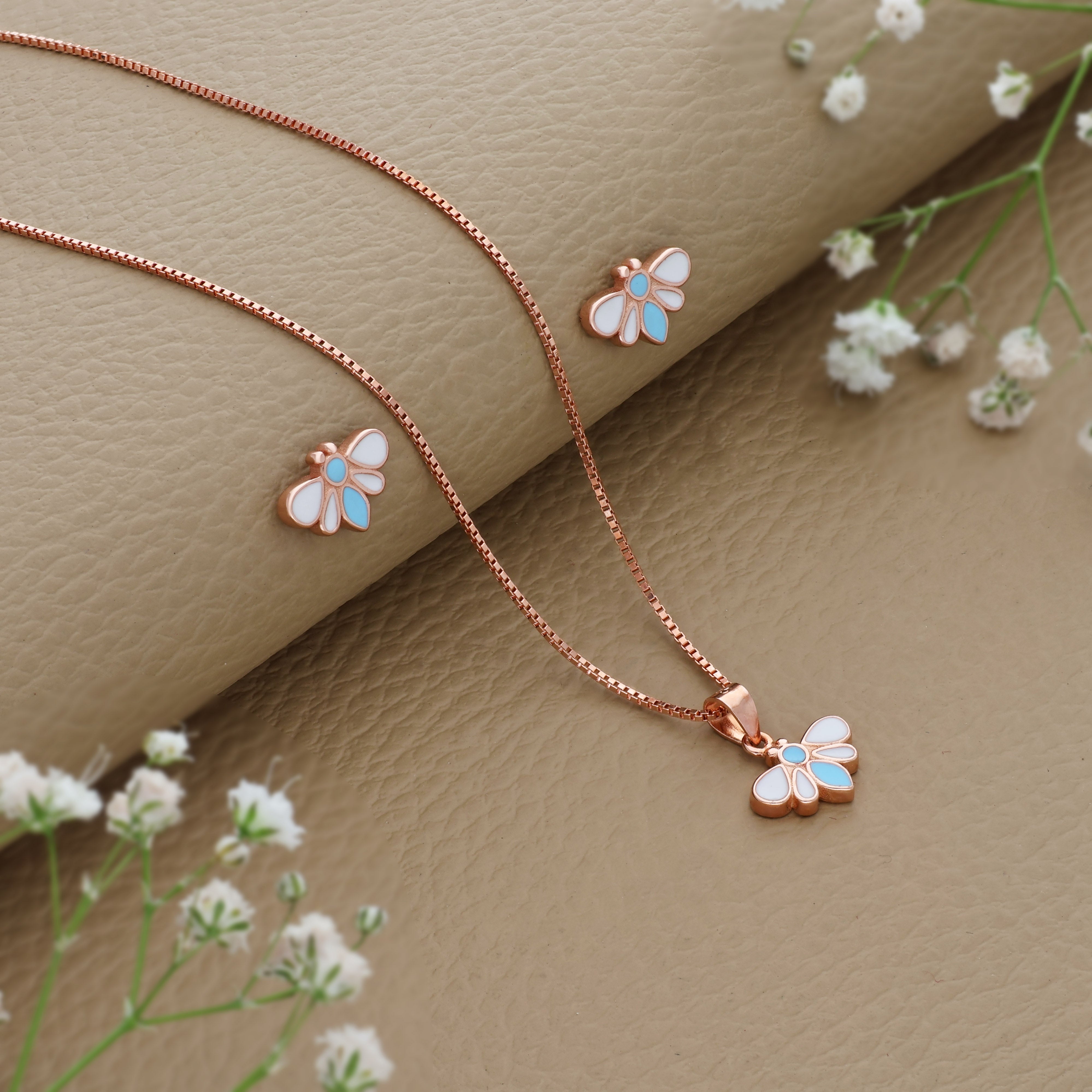 Bloomy Joy Rose Gold Polish 925 Silver Kids Chain Pendant (3+ Years)