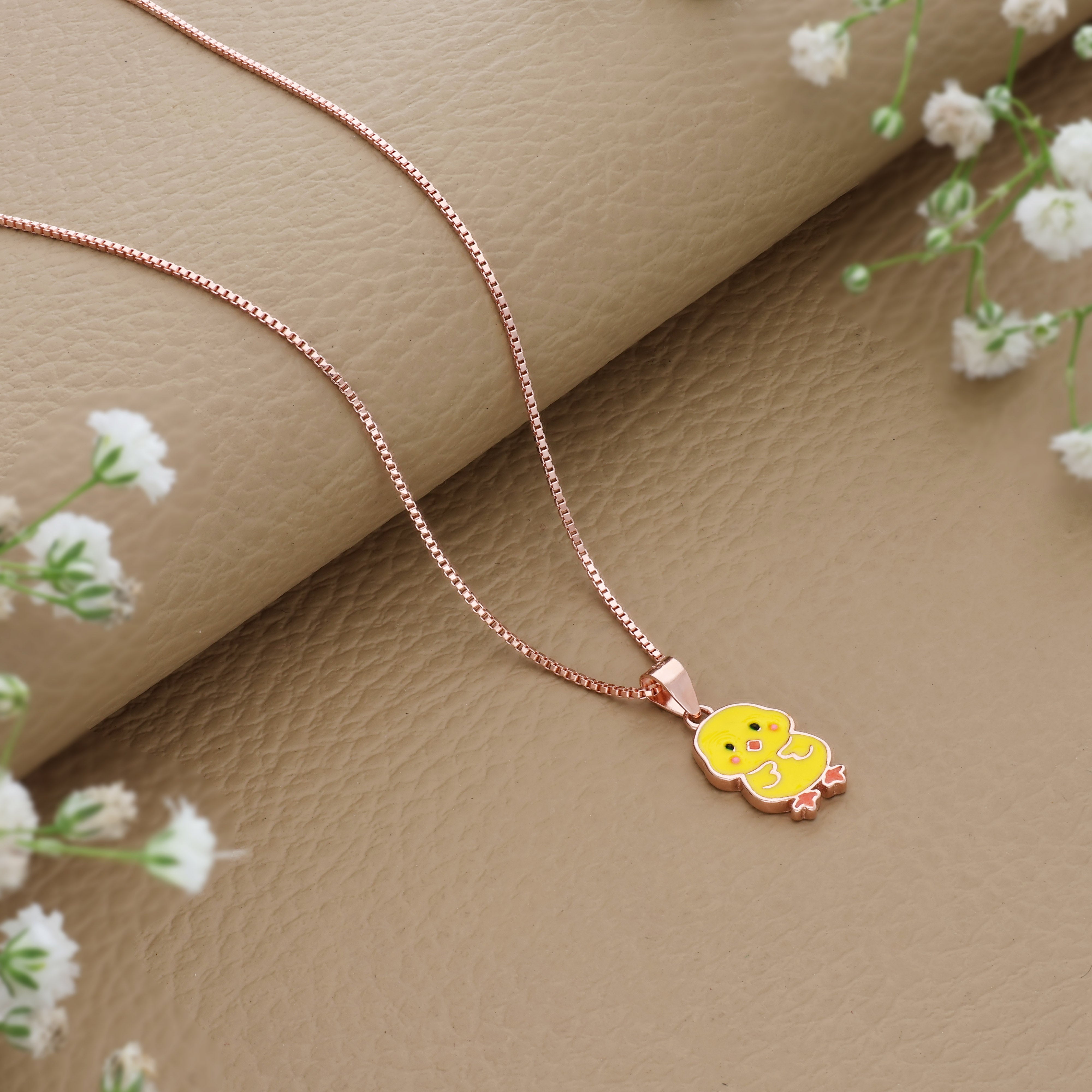 Sunny Duckie Rose Gold Polish 925 Silver Kids Chain Pendant (3+ Years)