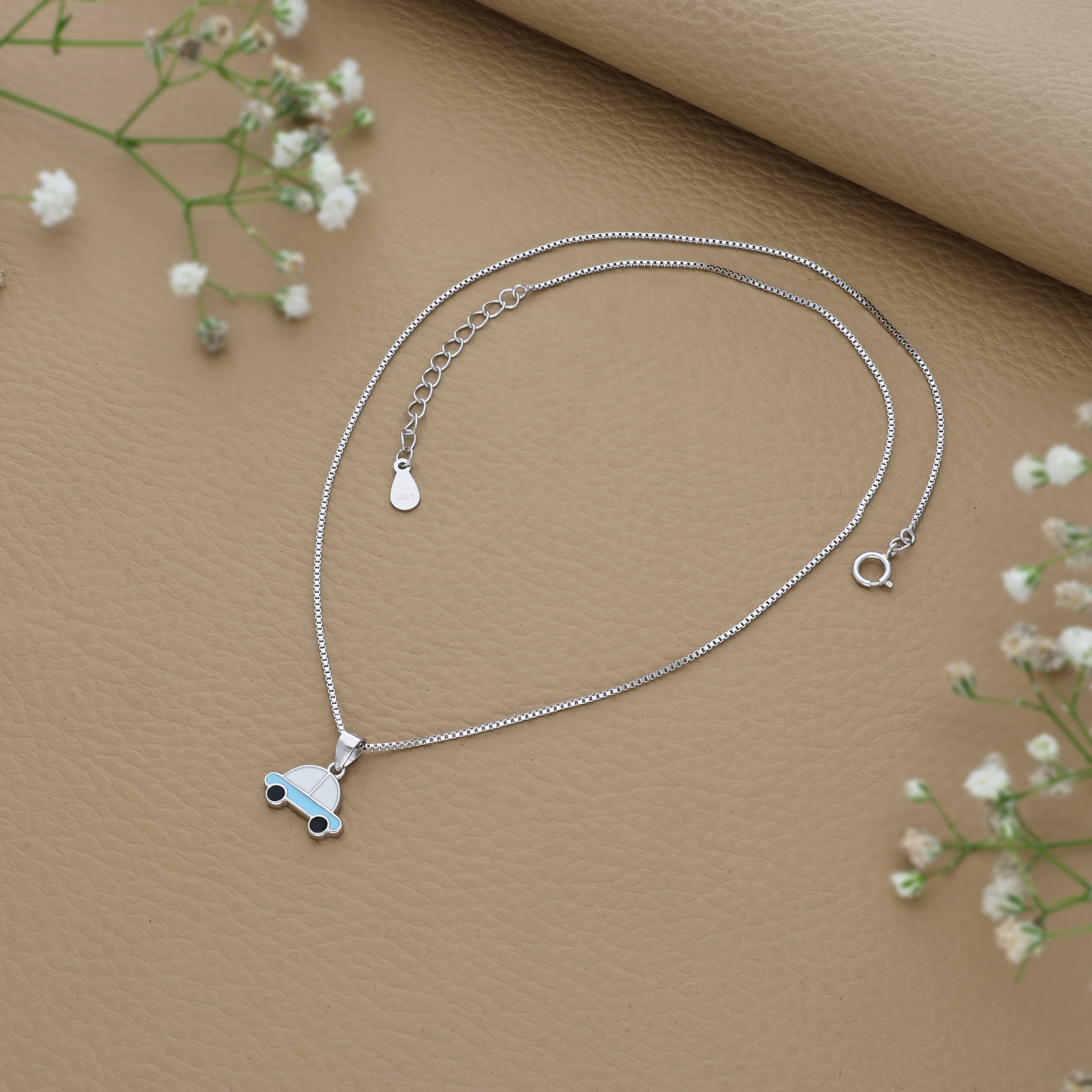 Blue Tiny Racer 925 Silver Kids Chain Pendant (3+ Years)