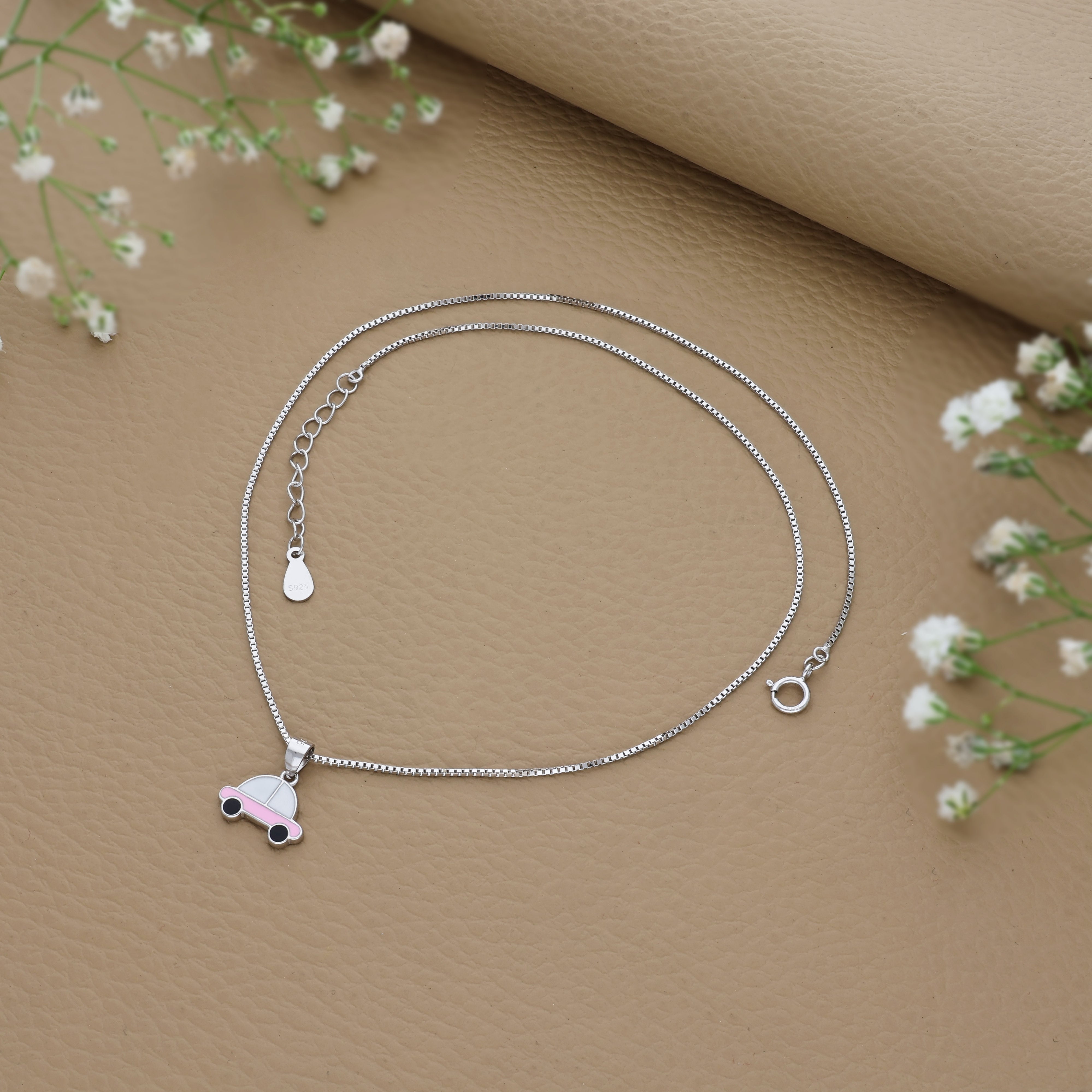 Peppy Pink Car 925 Silver Kids Chain Pendant (3+ Years)