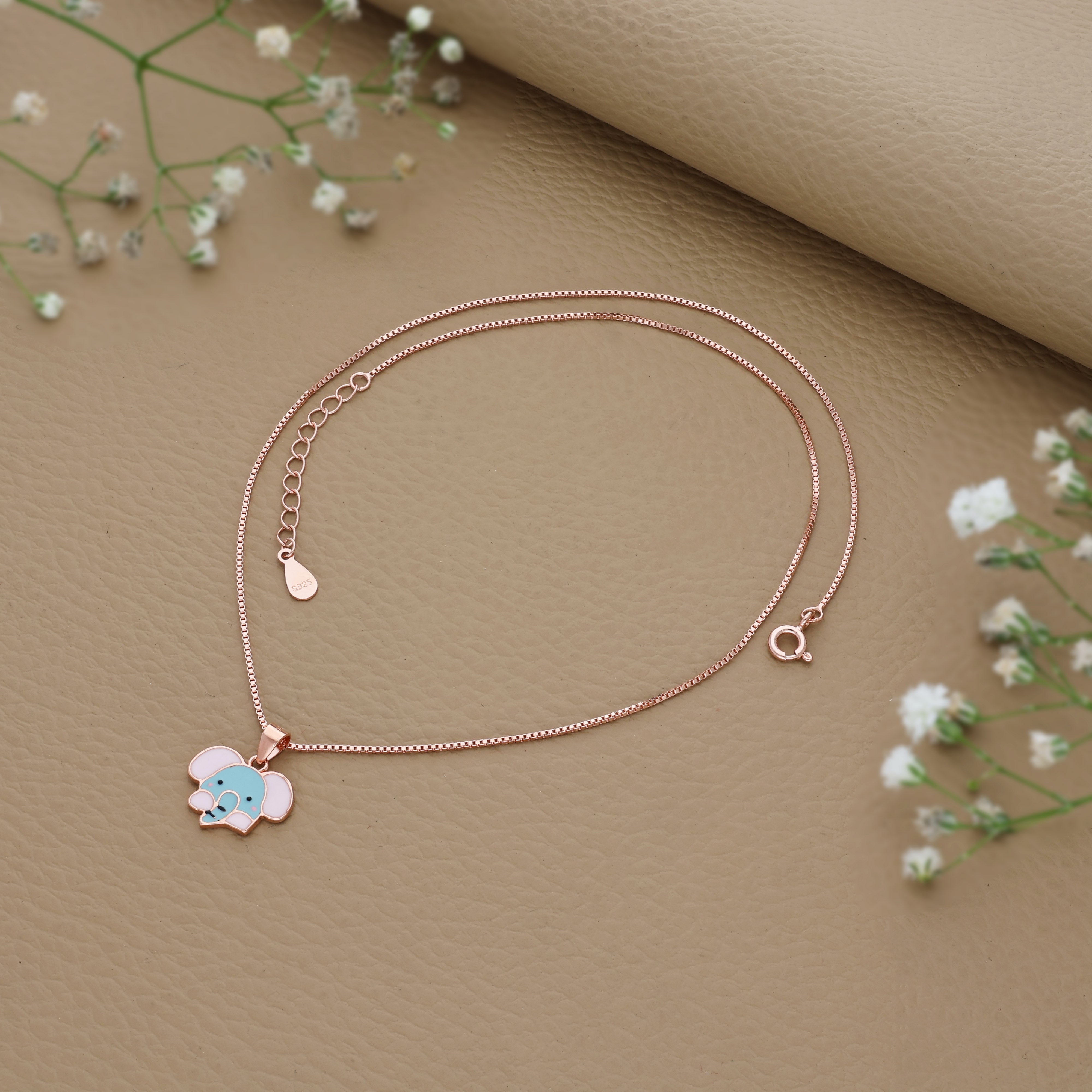 Cuddly Elephant Rose Gold Polish 925 Silver Kids Chain Pendant (3+ Years)