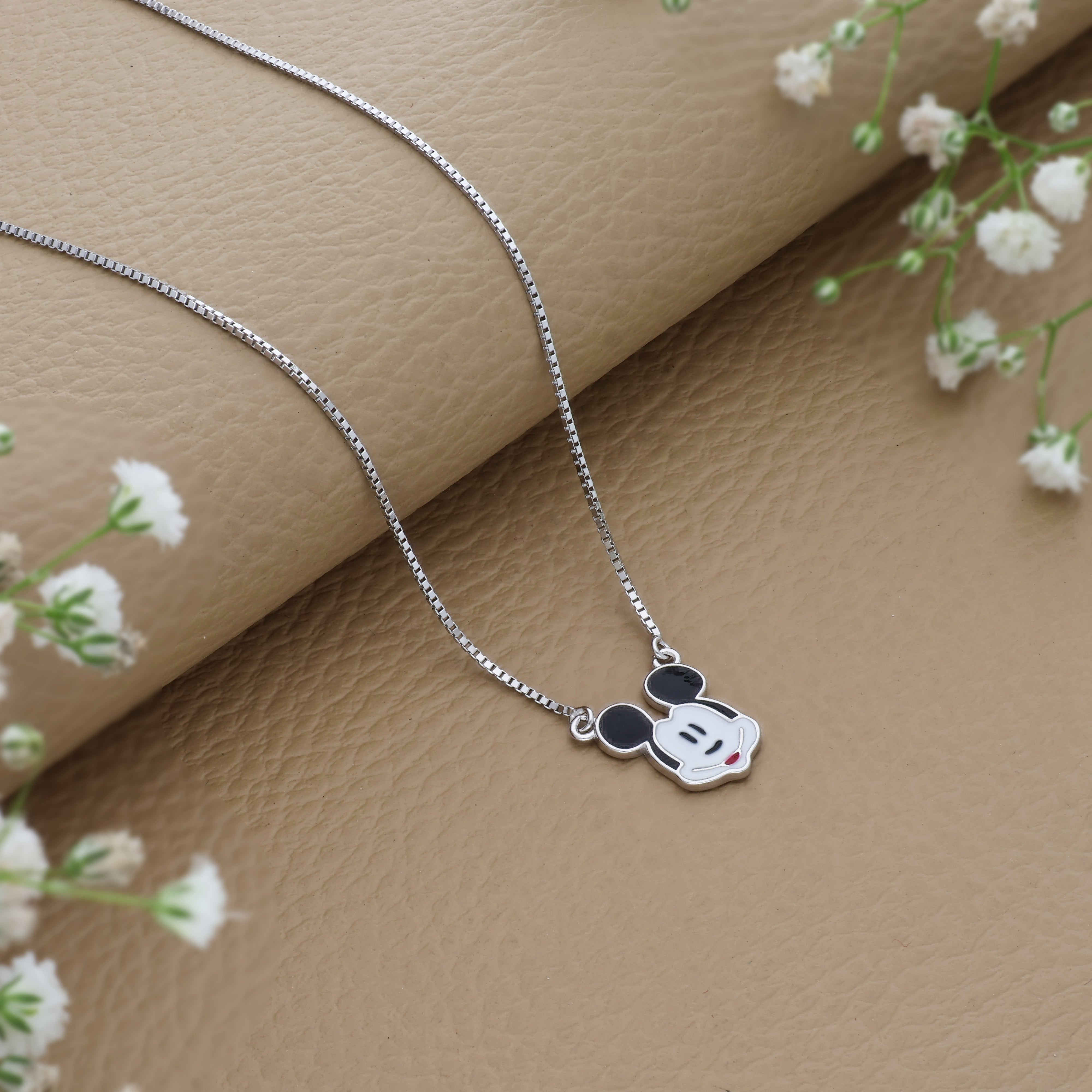 Cute Mickey Mouse 925 Silver Kids Chain Pendant (3+ Years)