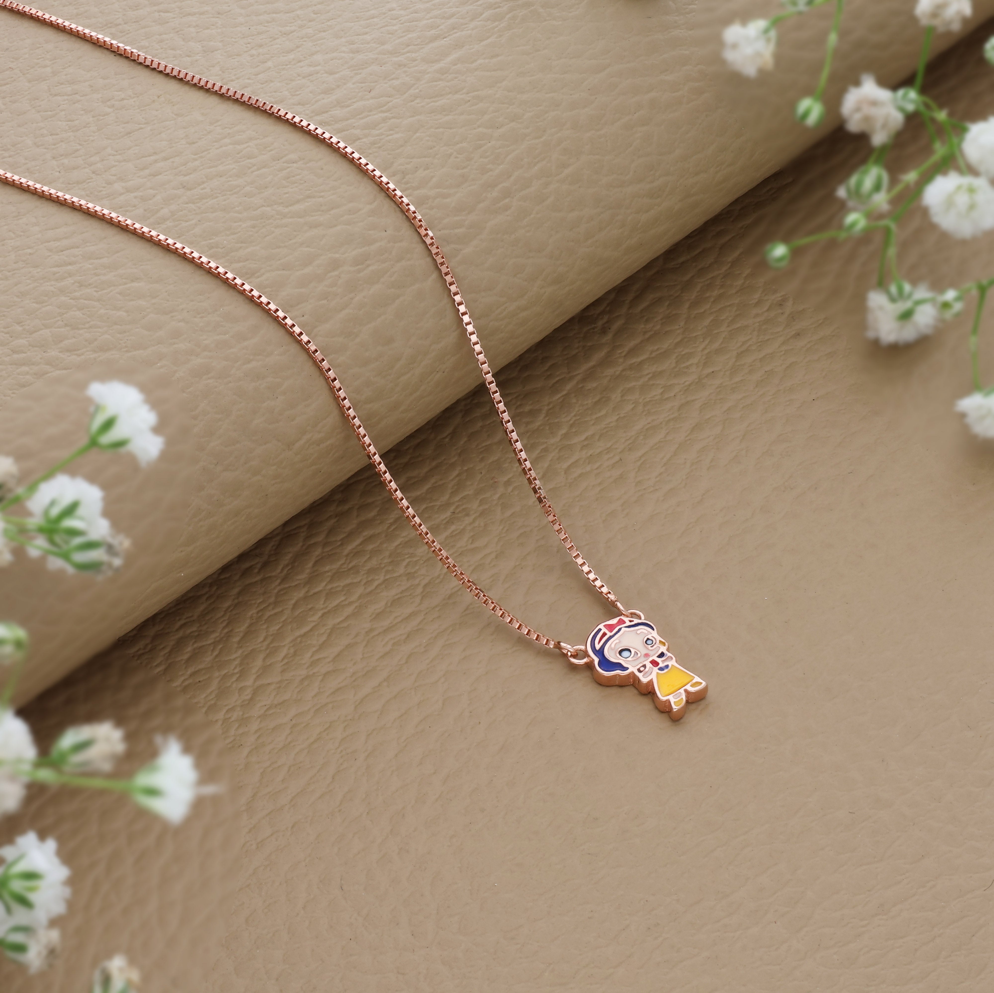 Sparkle Doll Rose Gold Polish 925 Silver Kids Chain Pendant (3+ Years)