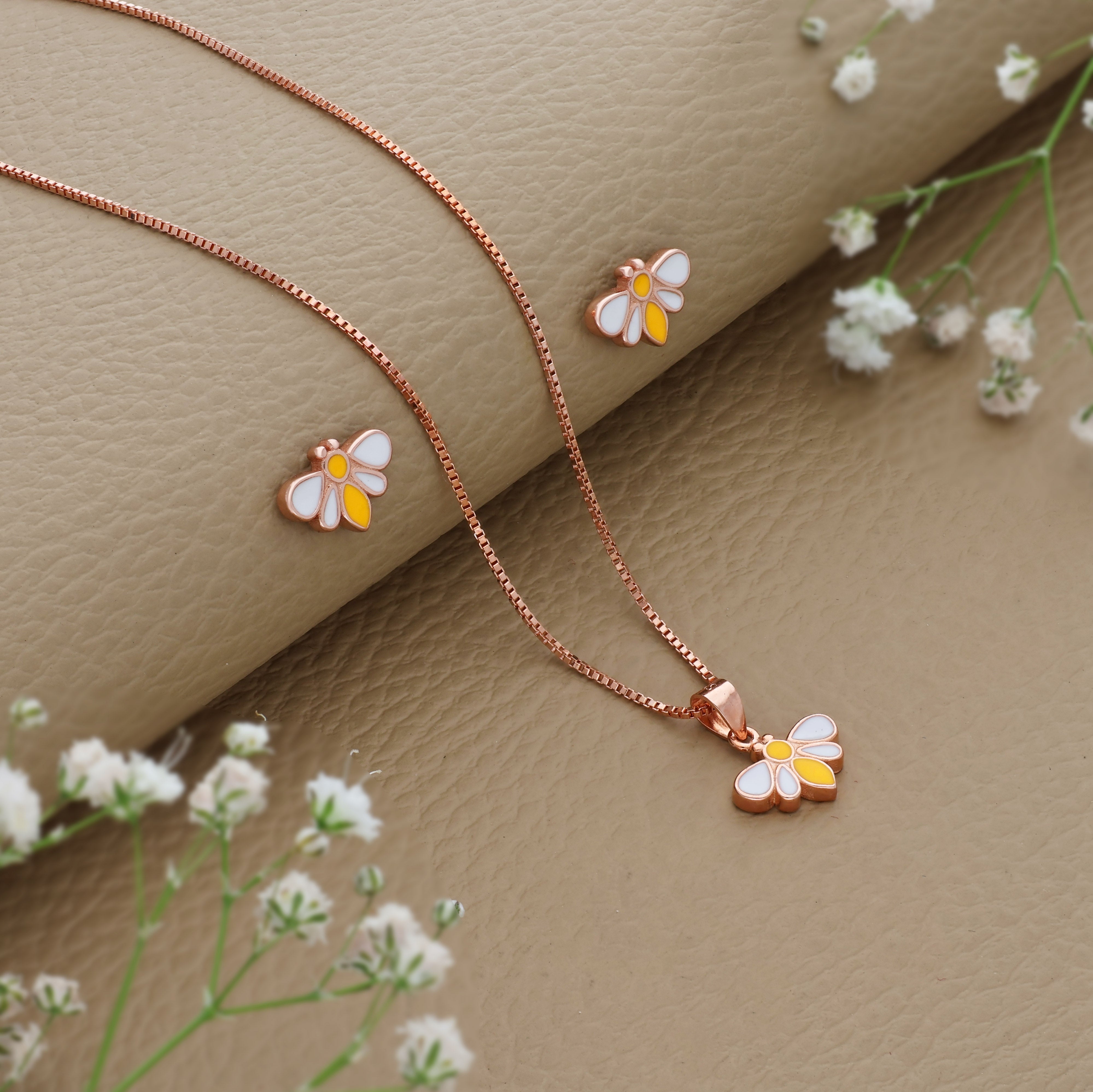 Delicate, dainty, and dazzling, the Twinkle Bloom pendant glows with youthful joy. This charming pendant comes as a set with matching studs, featuring an adjustable fit and lightweight design, perfect for gifting little ones aged 3 and above
