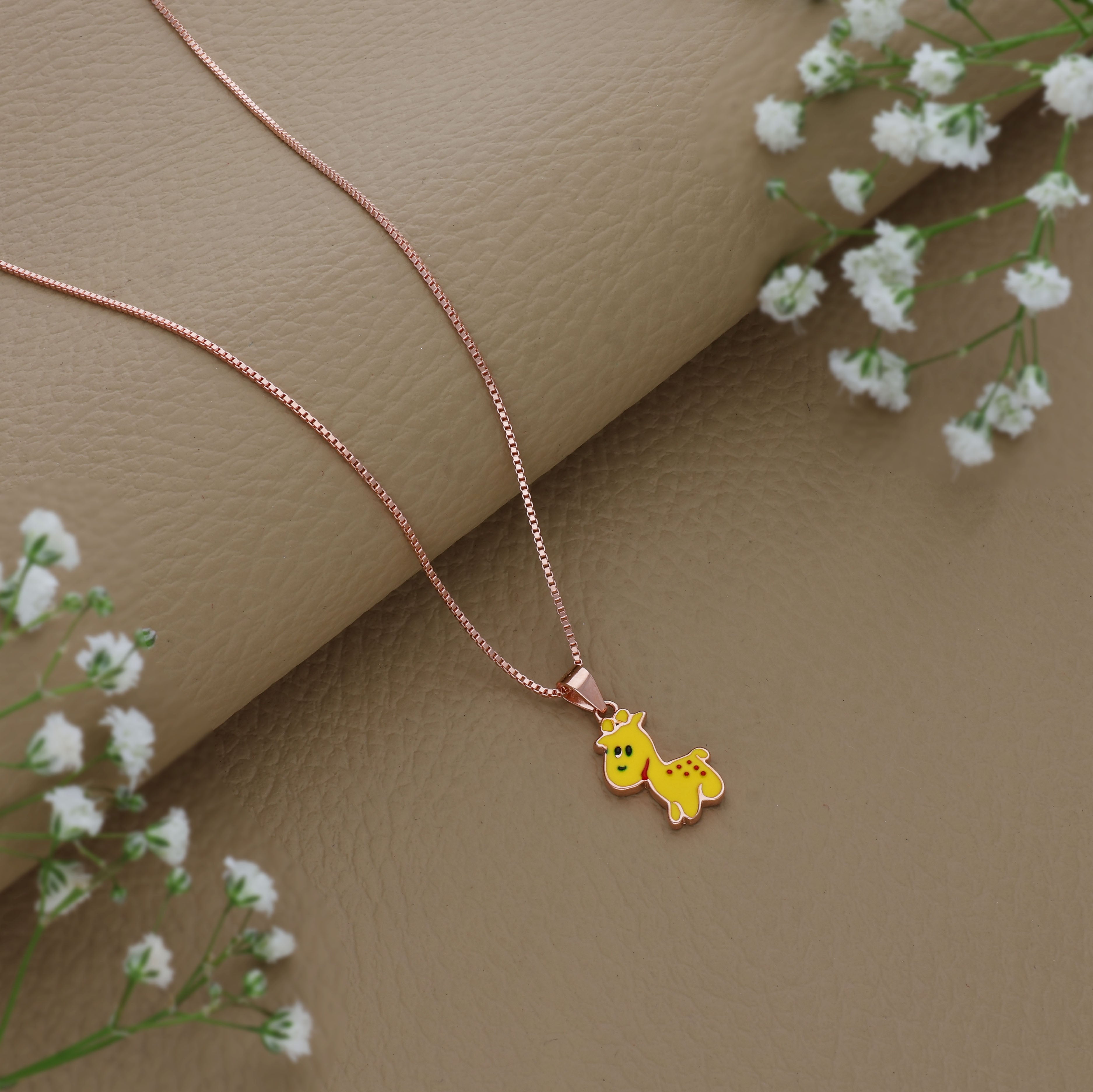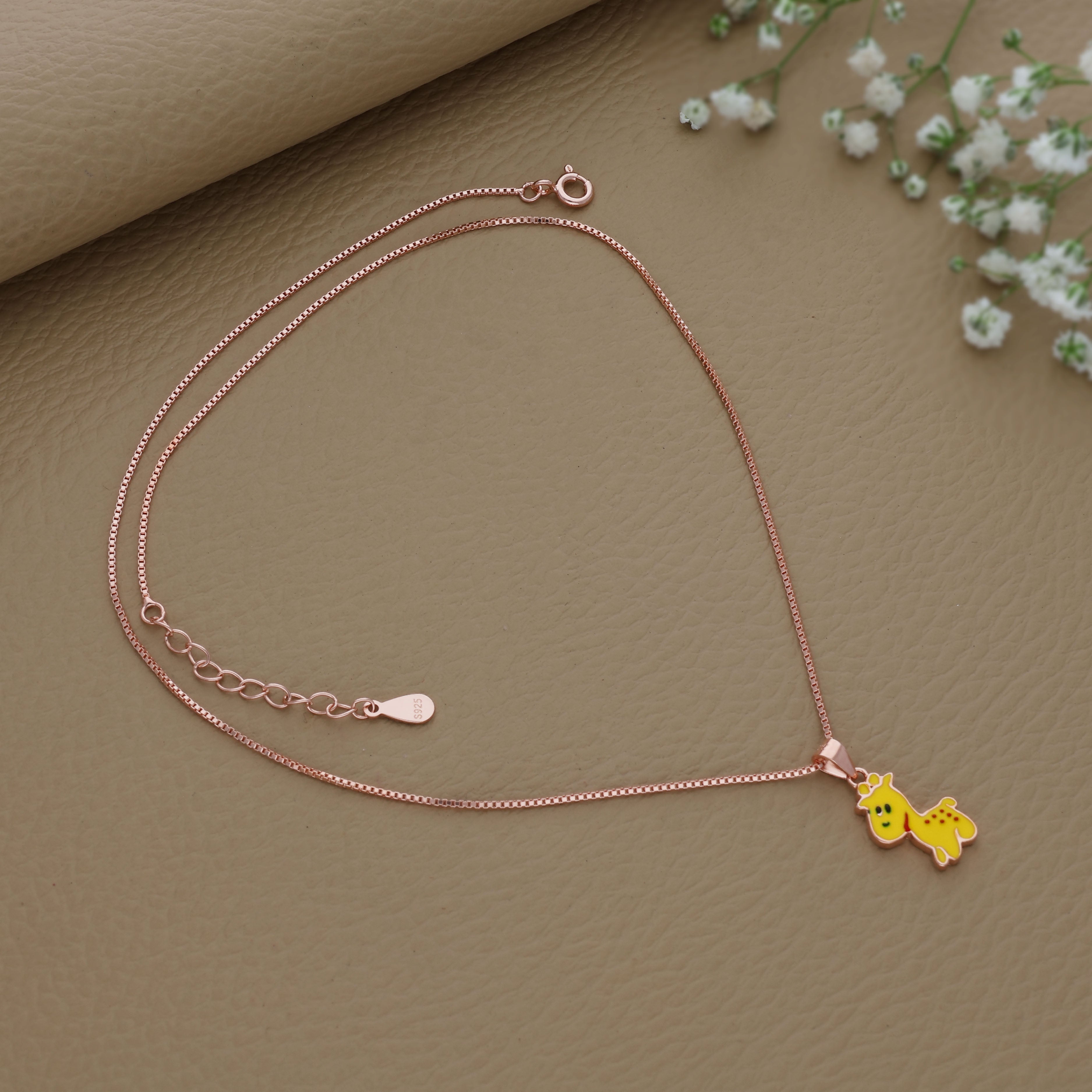Playful Giraffee Rose Gold Polish 925 Silver Kids Chain Pendant(3+ Years)