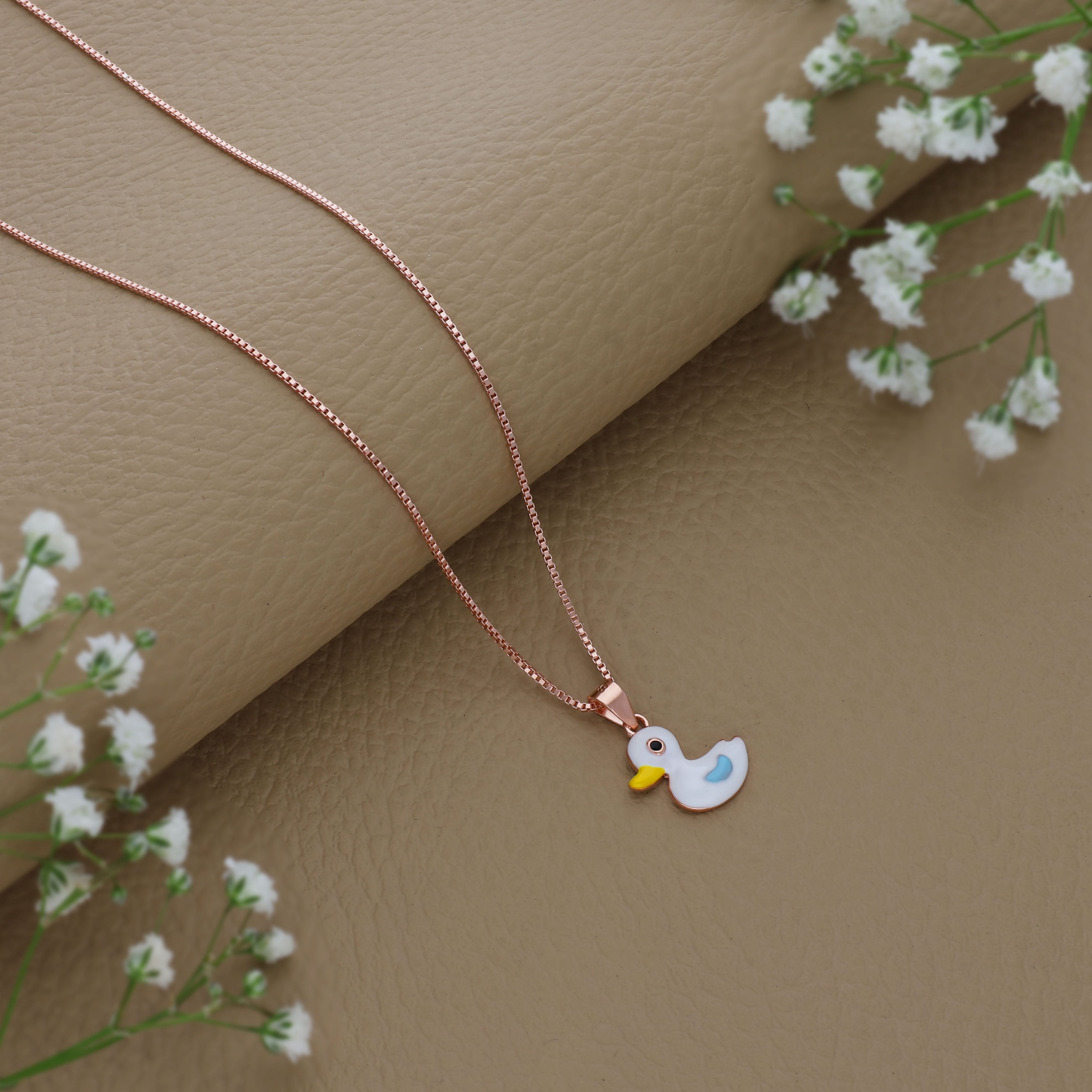 Lovely Duck Rose Gold Polish 925 Silver Kids Chain Pendant(3+ Years)