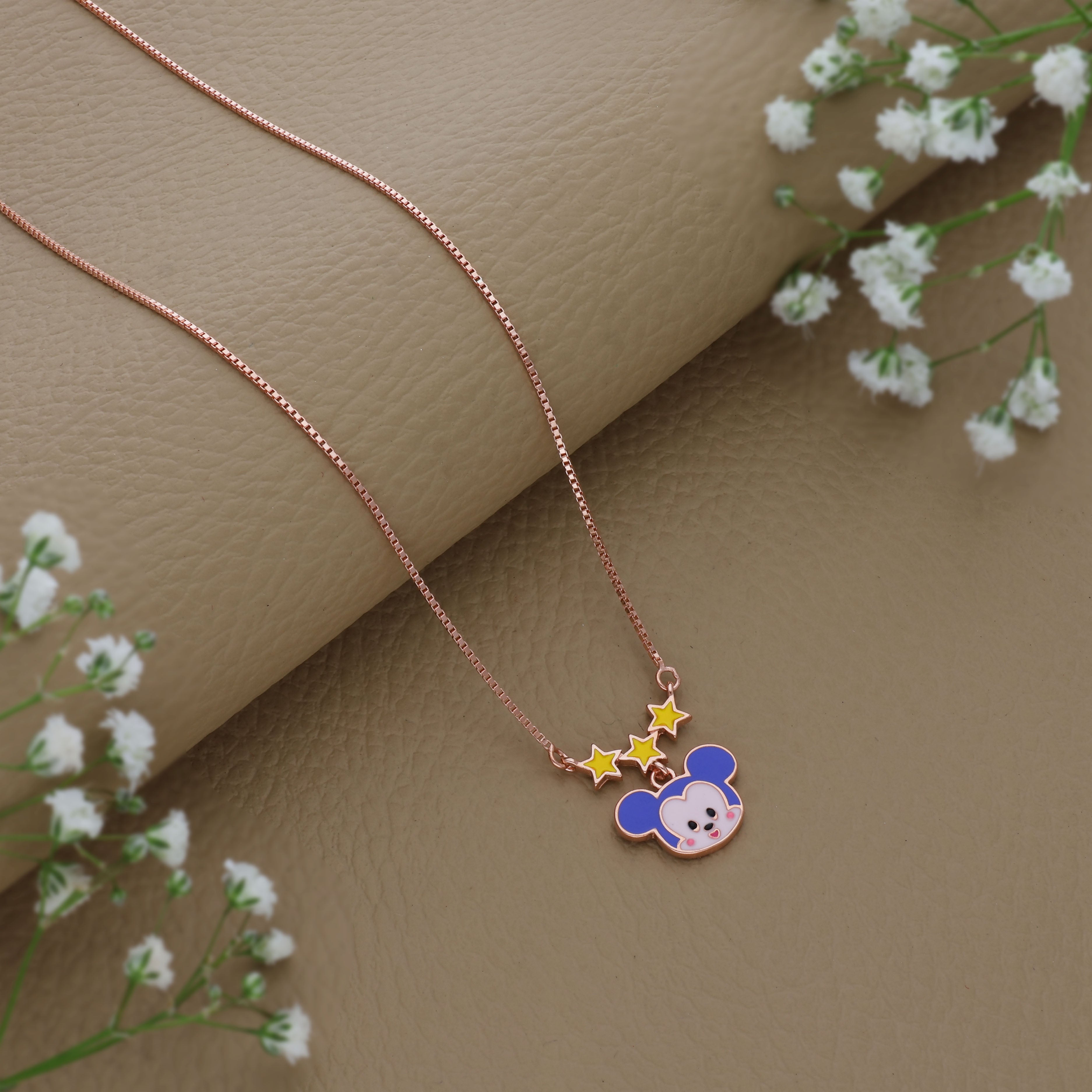 Starry Mouse Rose Gold Polish 925 Silver Kids Chain Pendant(3+ Years)