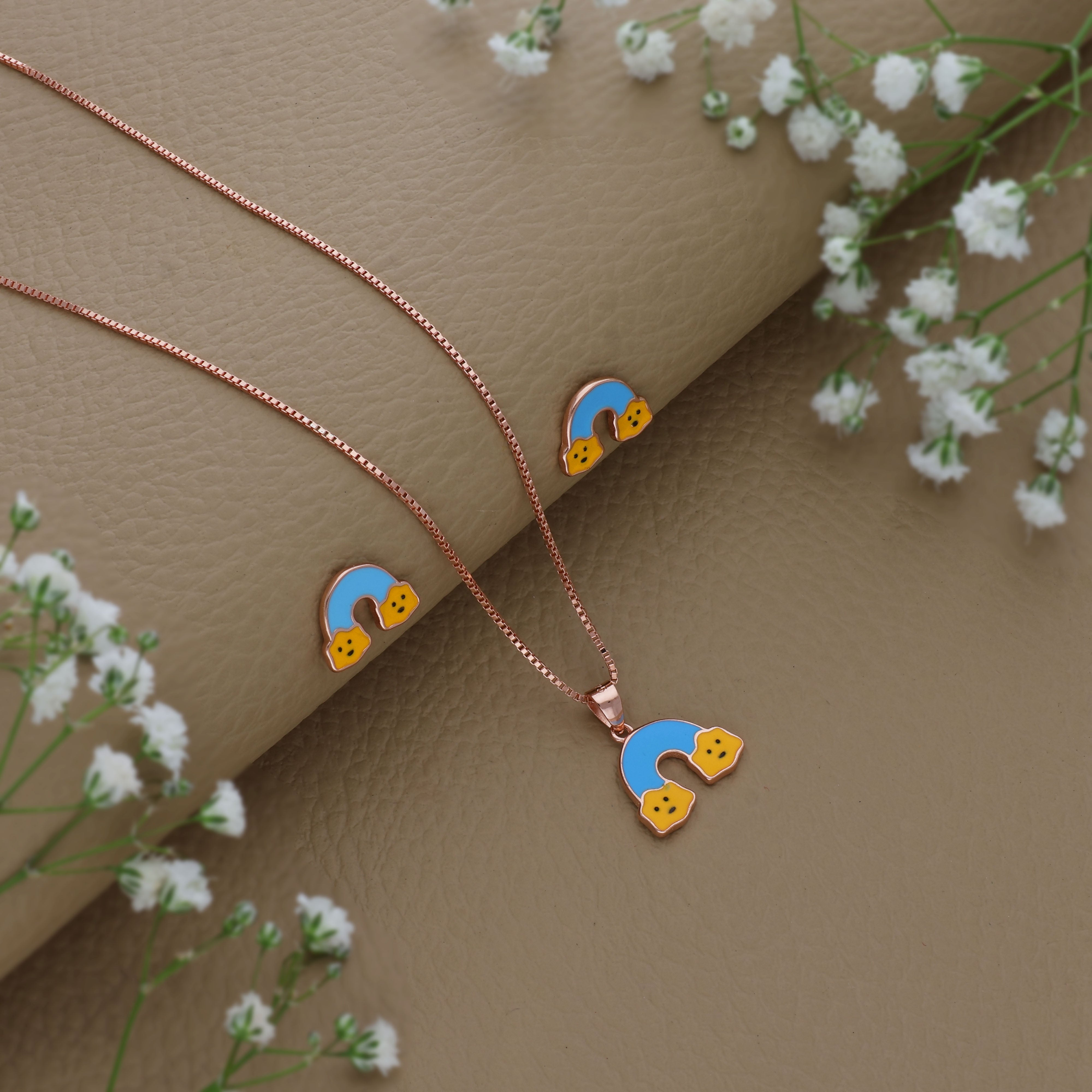 Rainbow Glow Rose Gold Polish 925 Silver Kids Chain Pendent(3+ Years)
