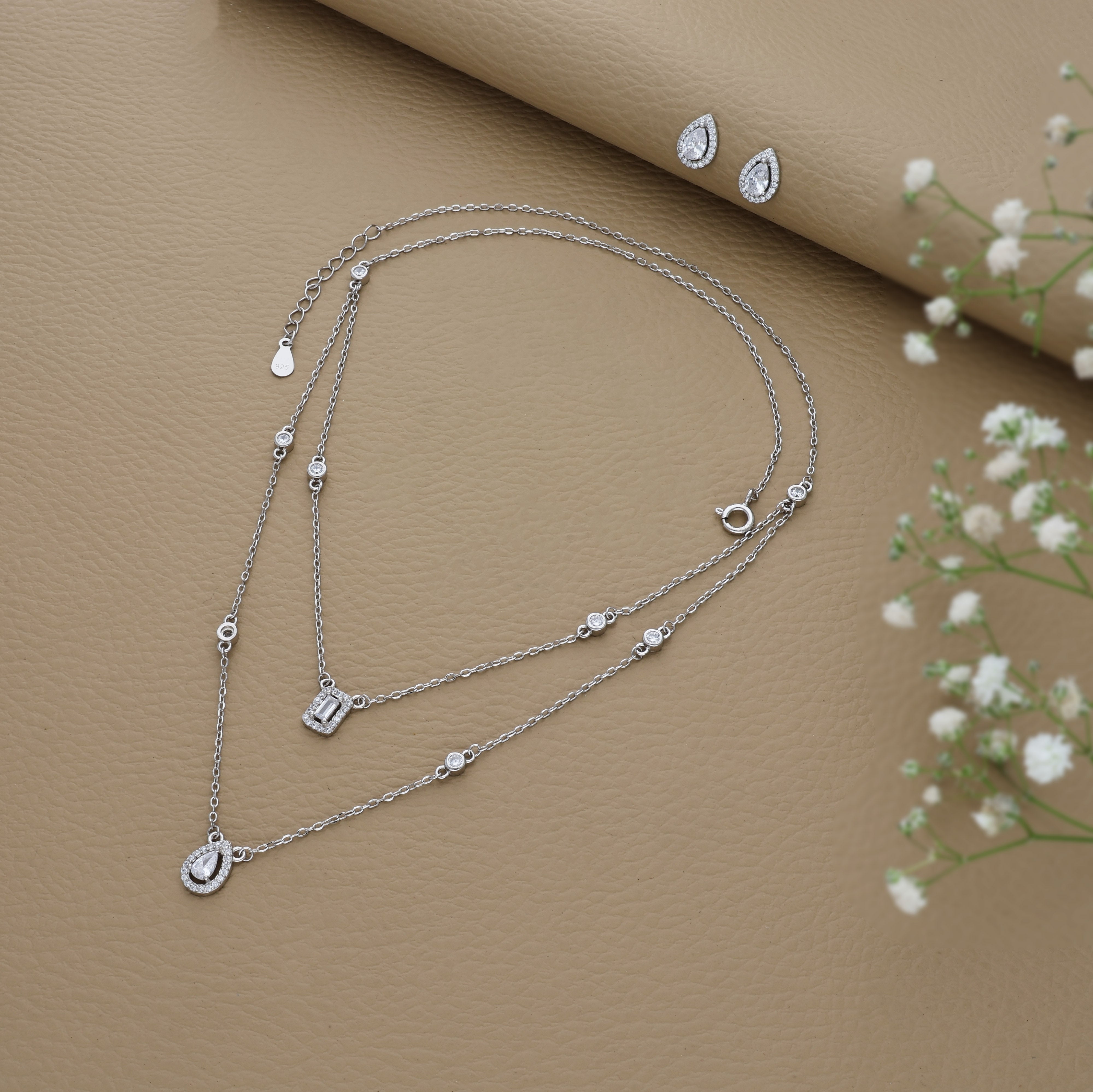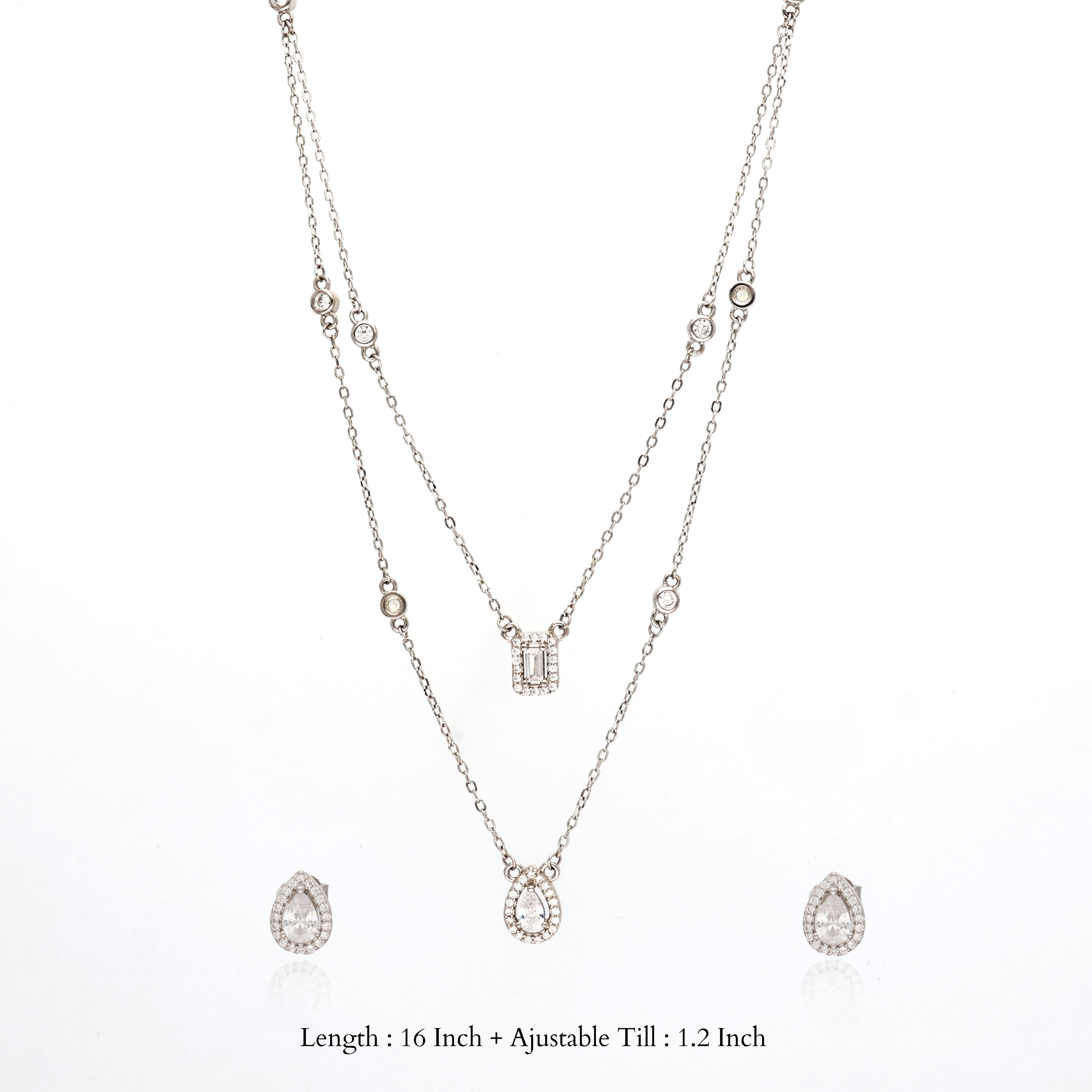 Add effortless grace to your look with the Shimmering Double Layer Silver Necklace Set, beautifully crafted with sparkling zircon stones for a radiant finish. Gentle on the skin and elegantly layered, it comes with a pendant and a matching pair of studs bringing timeless charm and sophistication to every occasion.