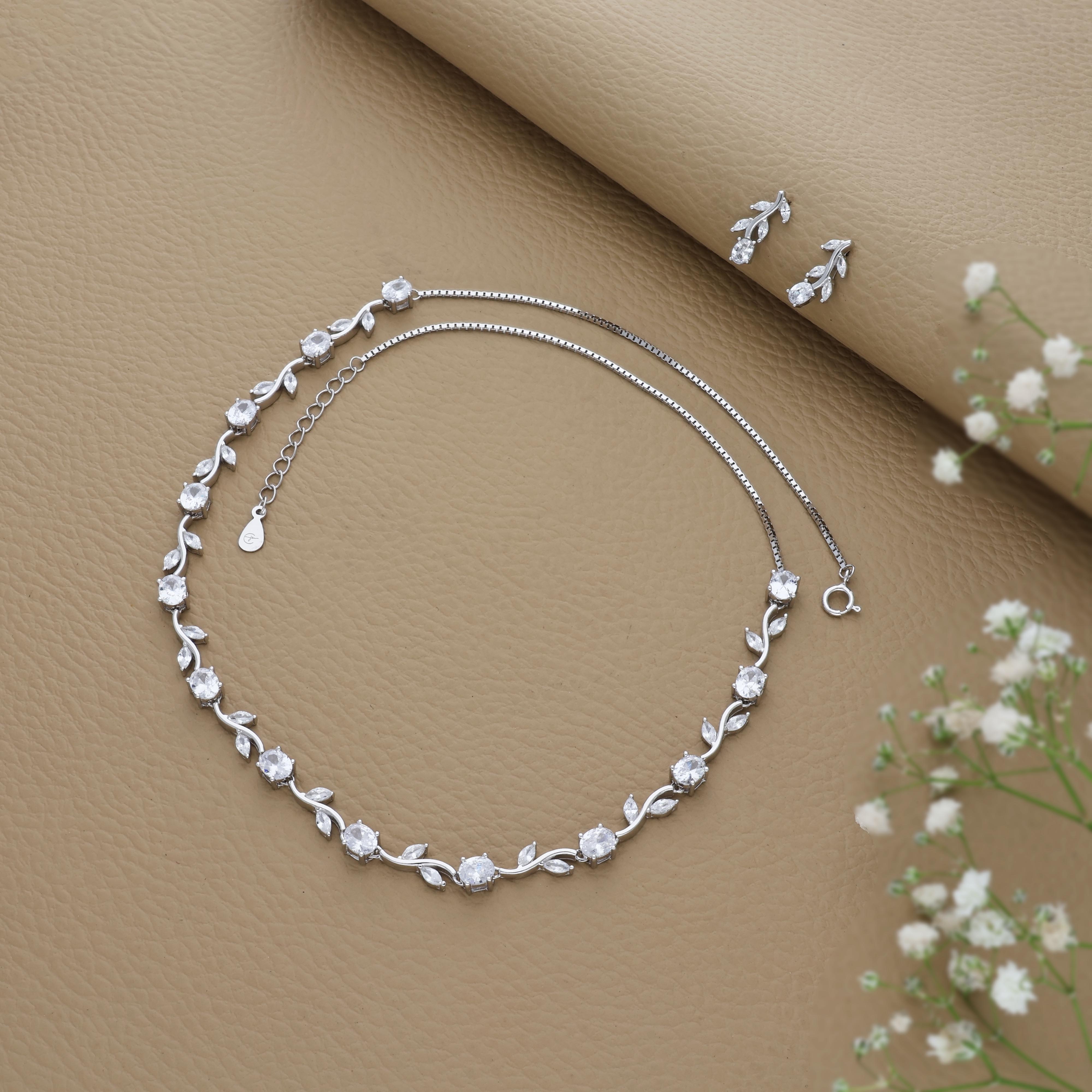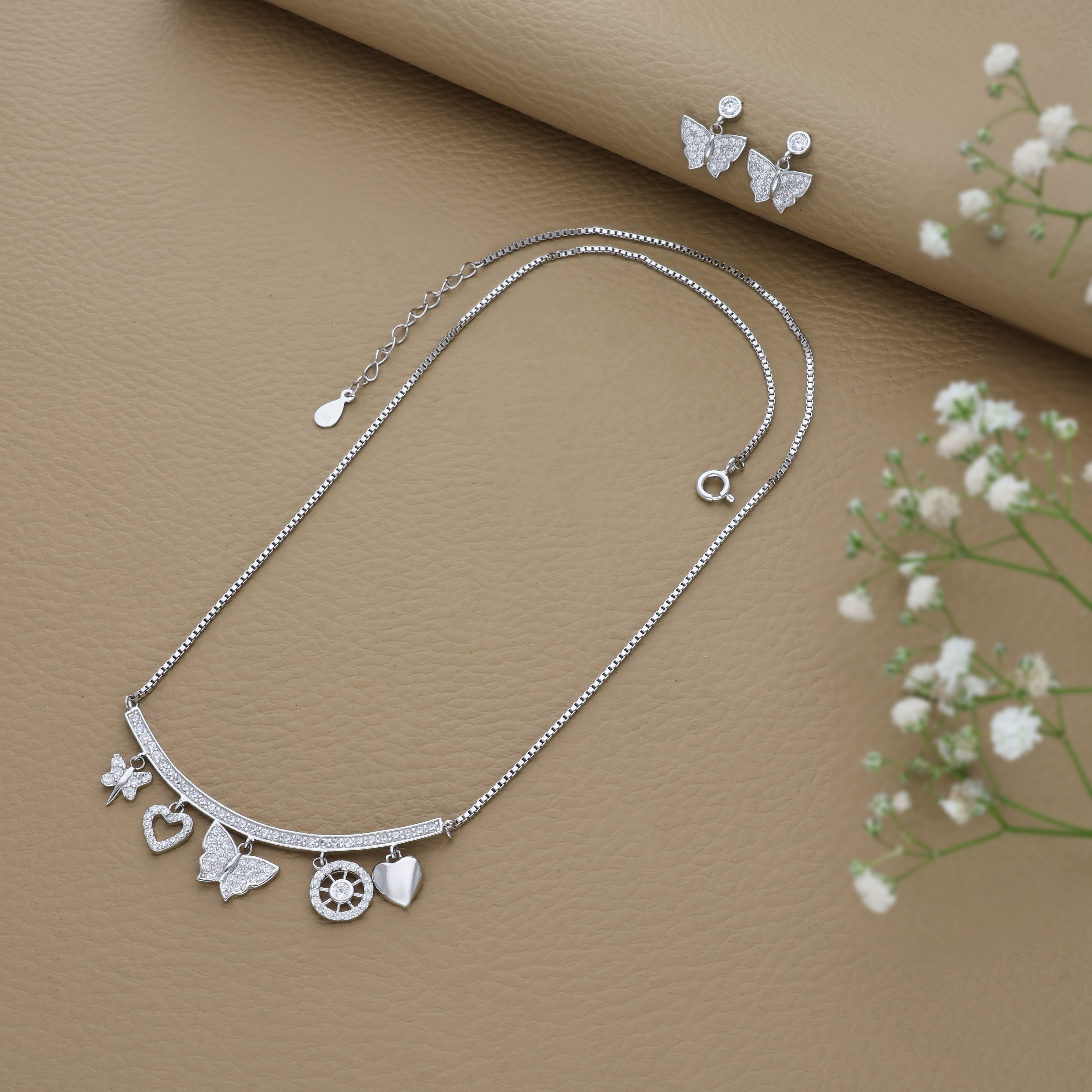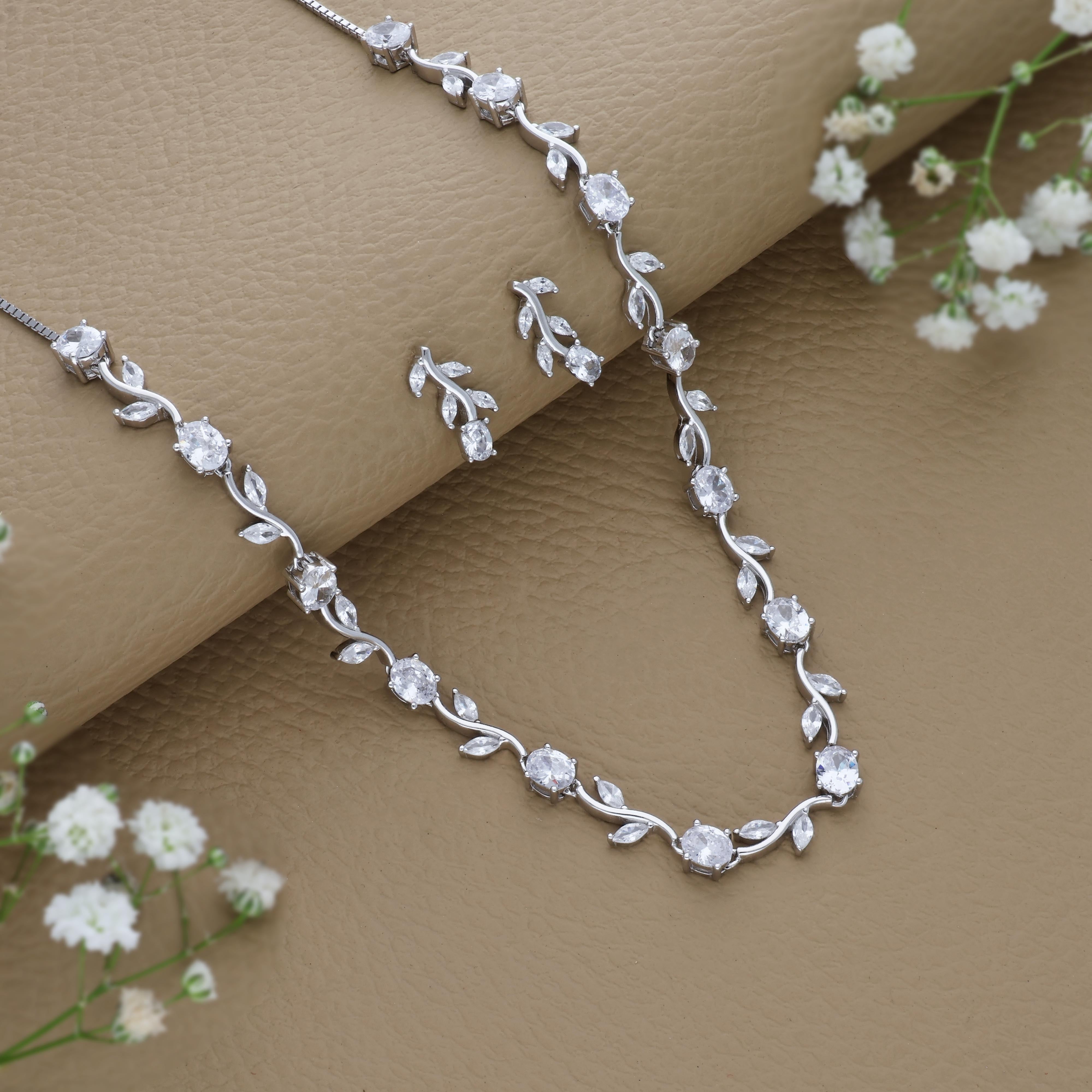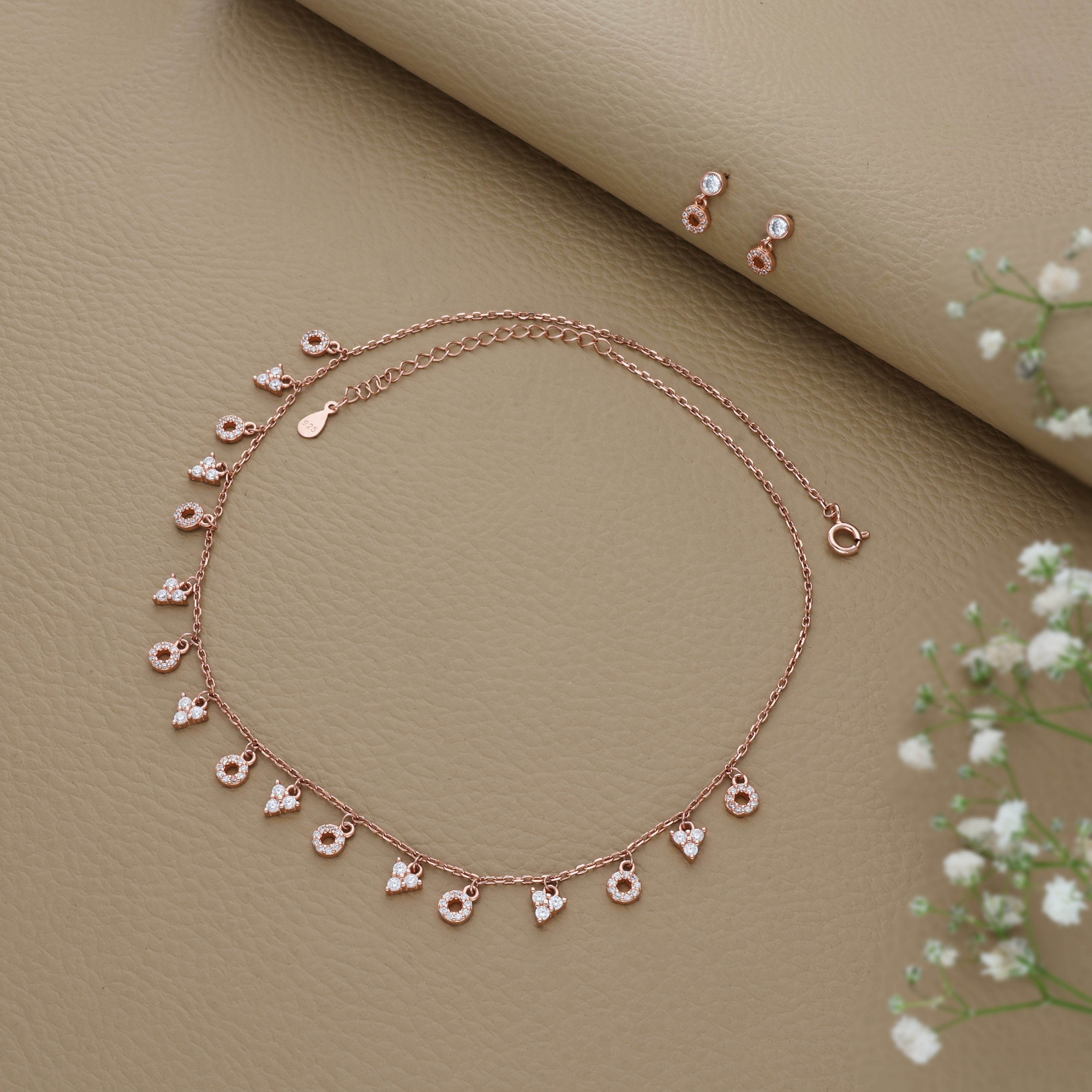 Graceful Hanging Stone Rose Gold Silver Necklace Set