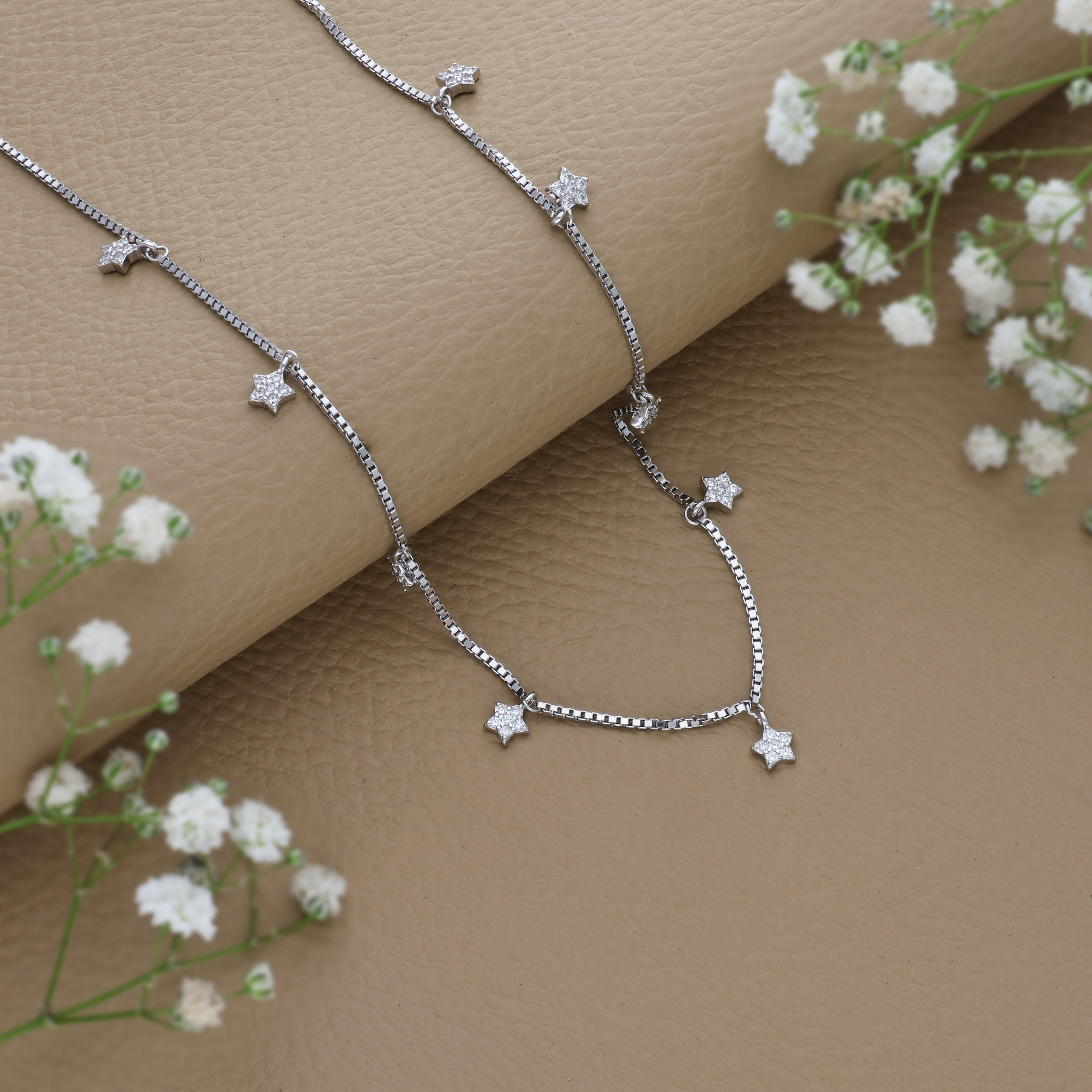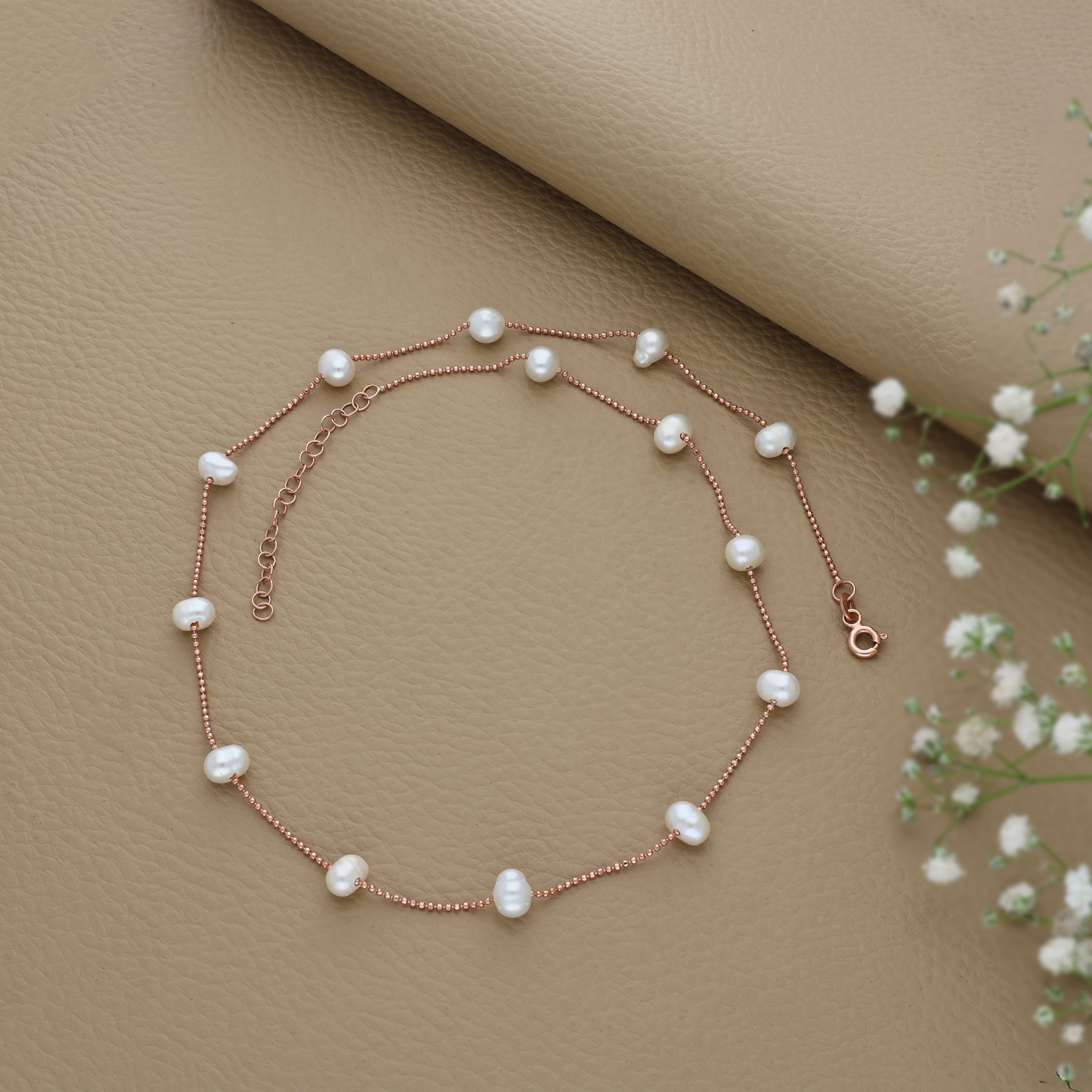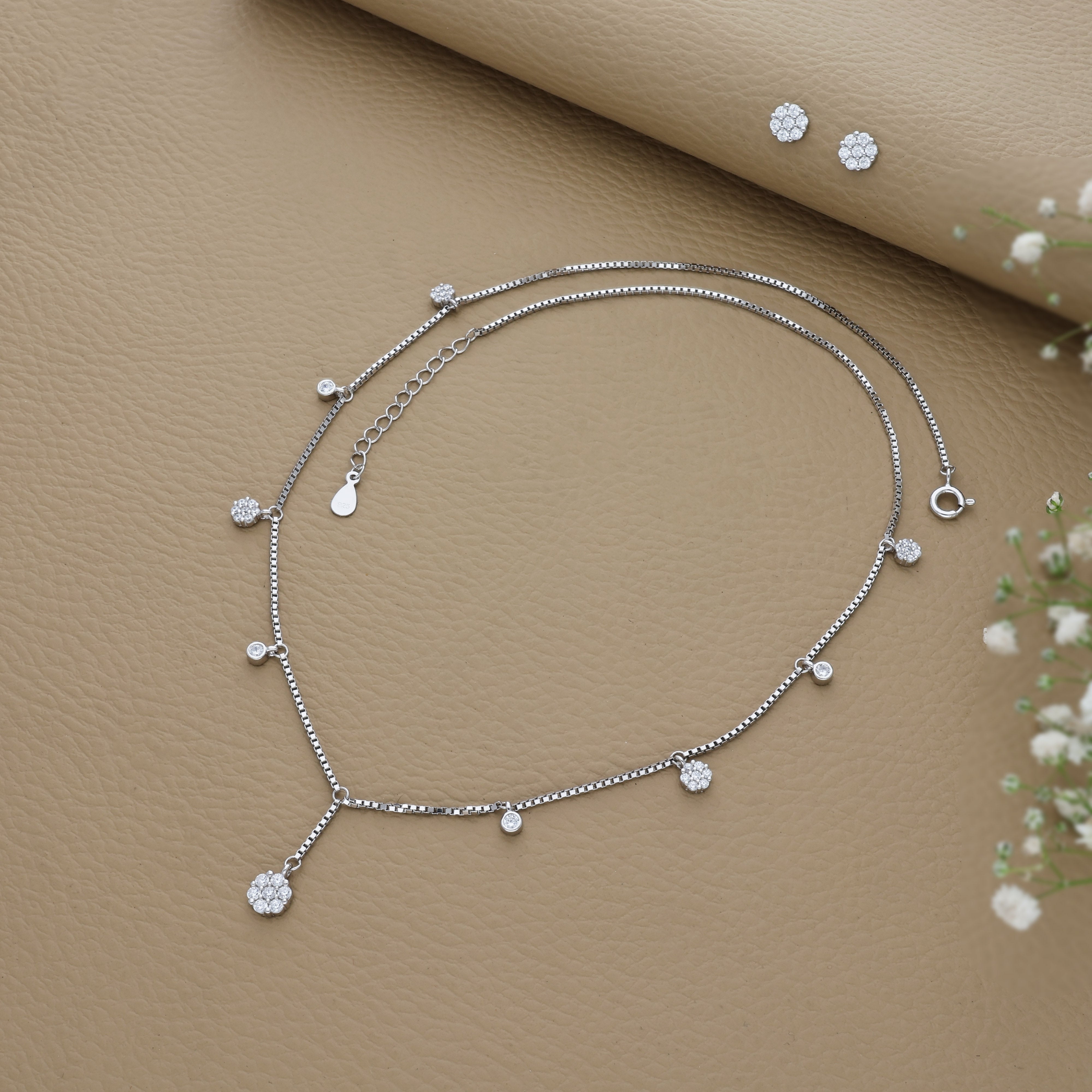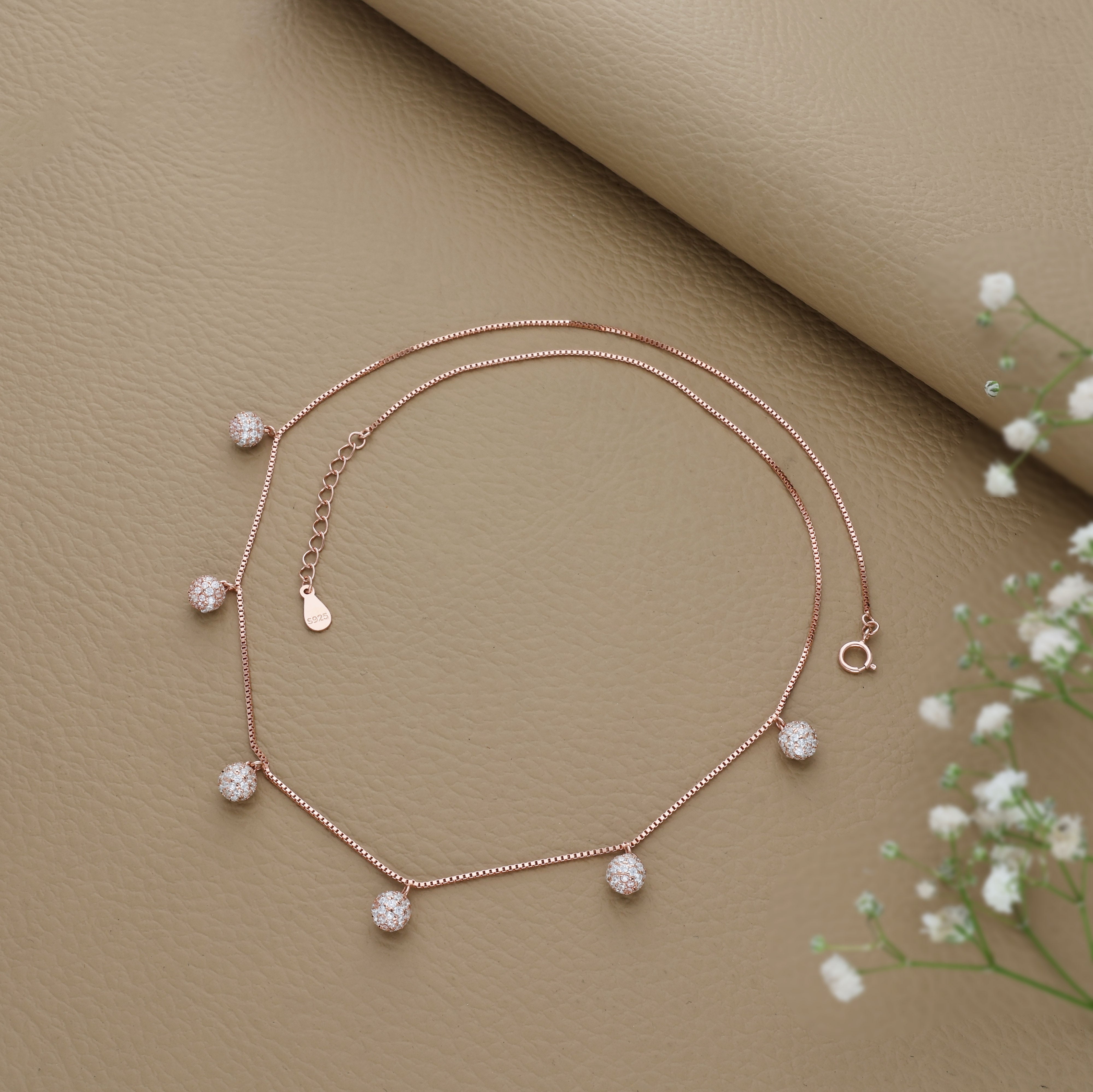 Graceful Hanging Stone Rose Gold Silver Necklace Set