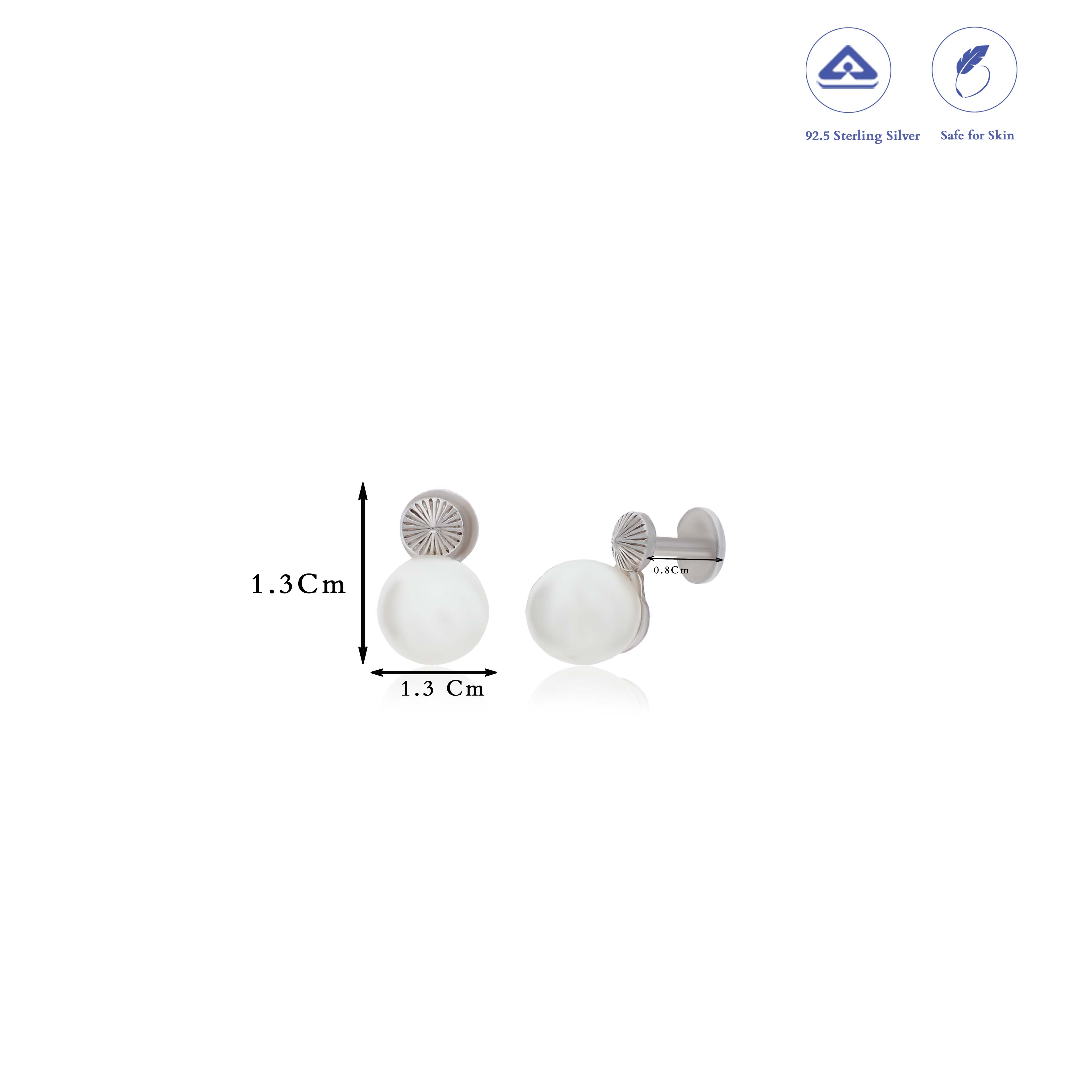 The Pearl Shine 925 Silver Studs feature a lustrous pearl design that radiates timeless elegance. Crafted in sterling silver, they are accented with subtle sparkle, making them perfect for everyday wear or special occasions.