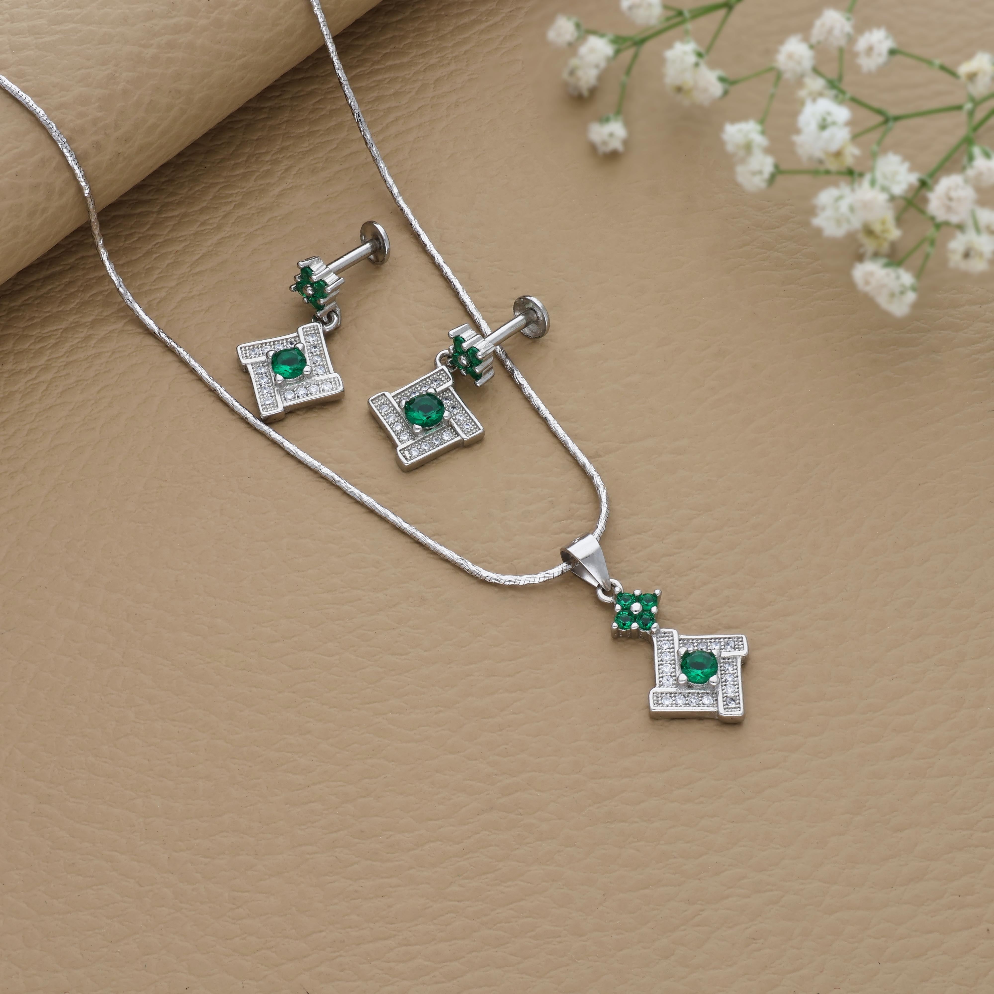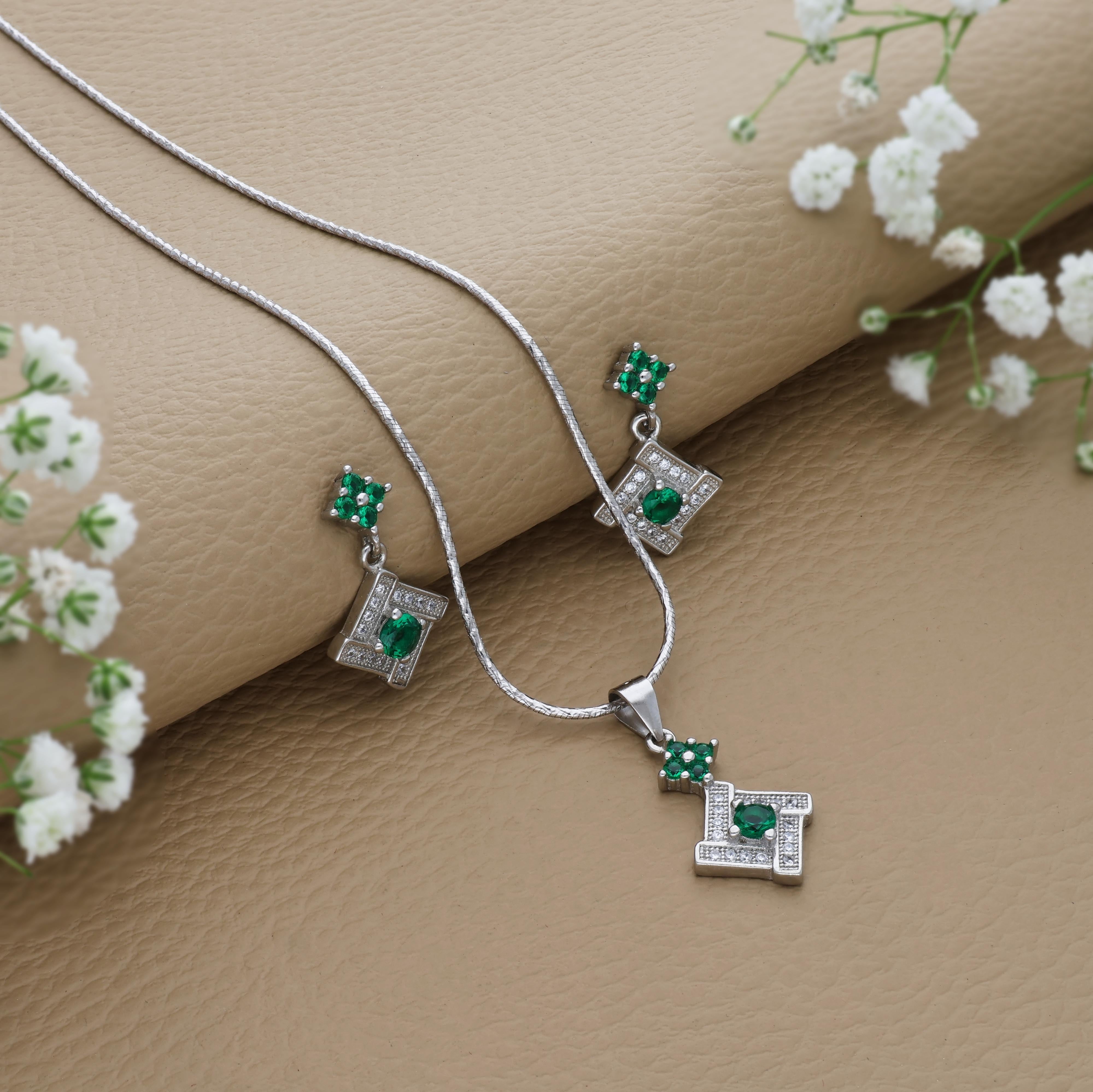 Charming Green Gem Silver Pendant Set for Women & Teen