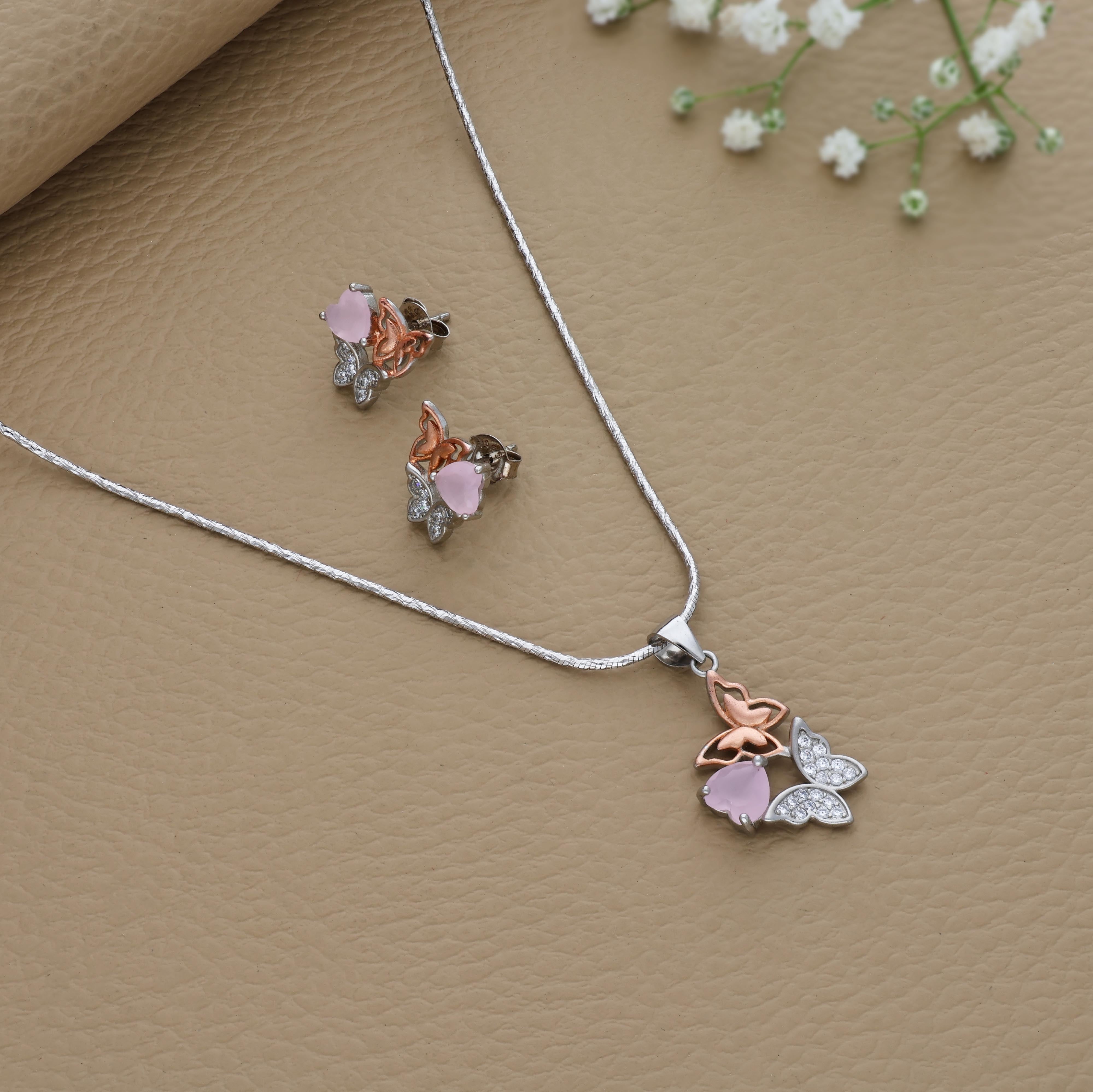 Tear Drop Rose Gold Polish Silver Pendent Set