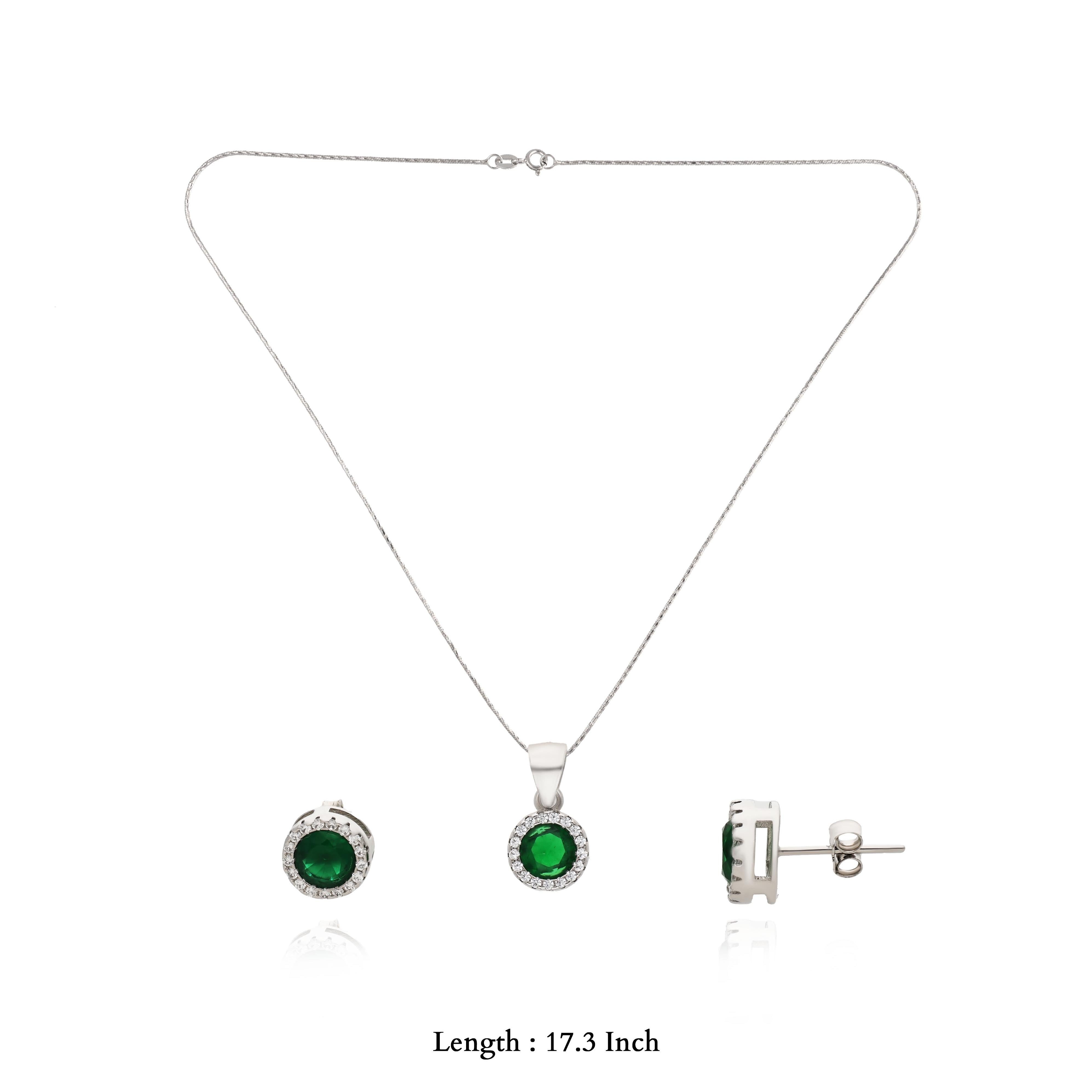 Glowing Green Circle Silver Pendant Set for Women & Teen