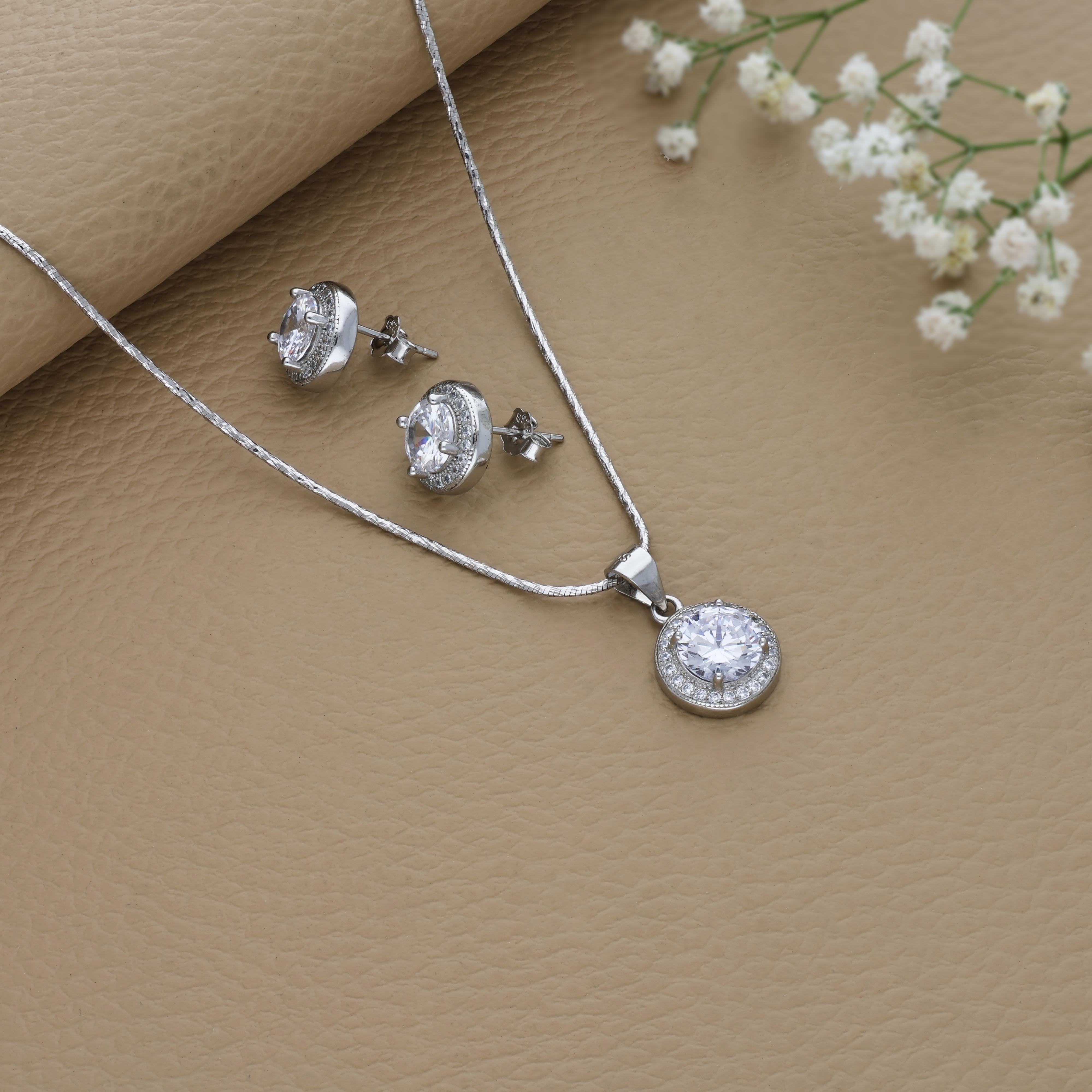 Sparkling White Oval Silver Pendant Set for Women & Teen