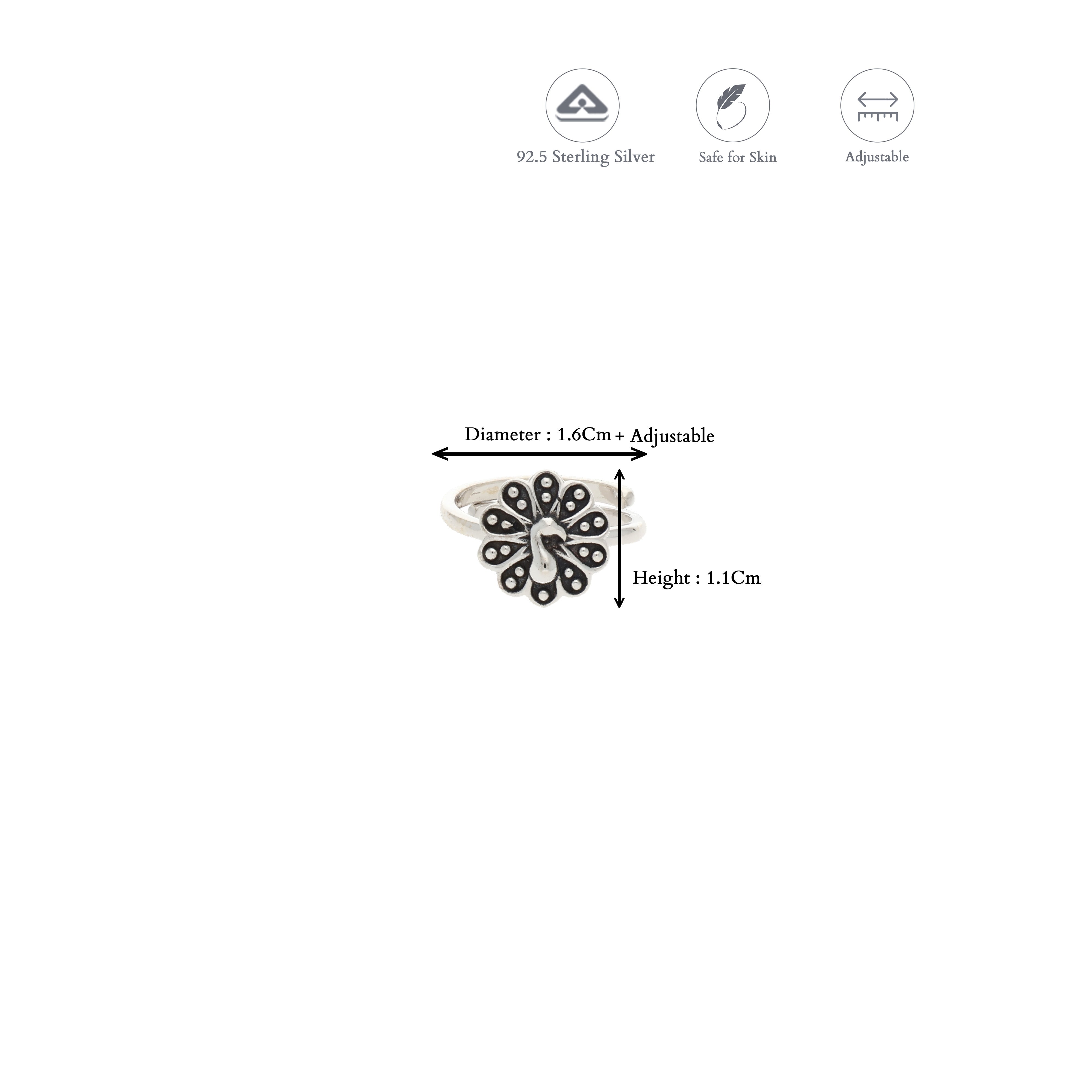 Charming Peacock oxidized adjustable Silver Toering